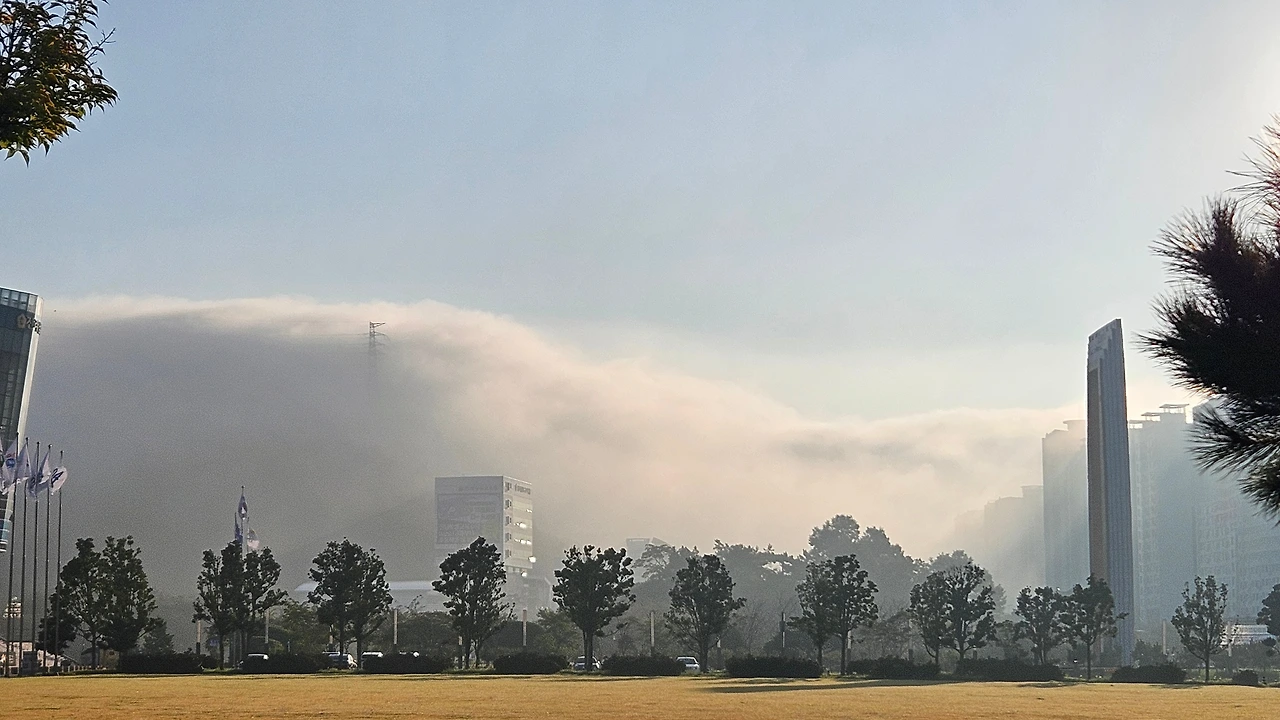 안개기둥이 해일처럼<출근길 한 컷>