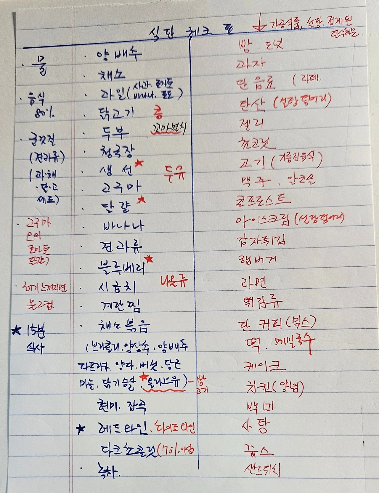 삭단 체크표를 만들어 실천하다(파란색 위주 섭취)