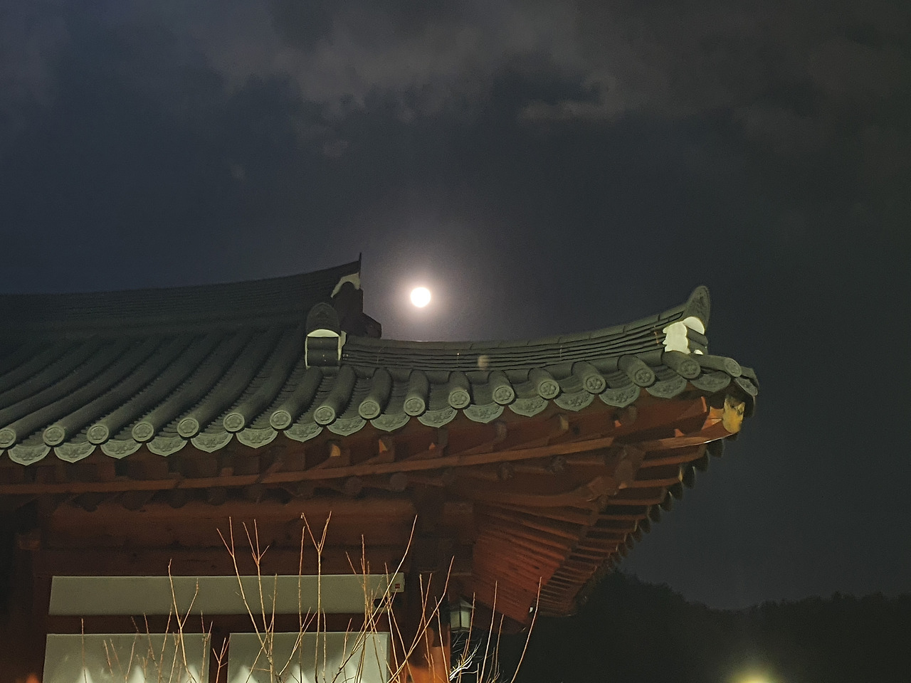 달의 위치가 용안처럼 보입니다. 기와집의 곡선에