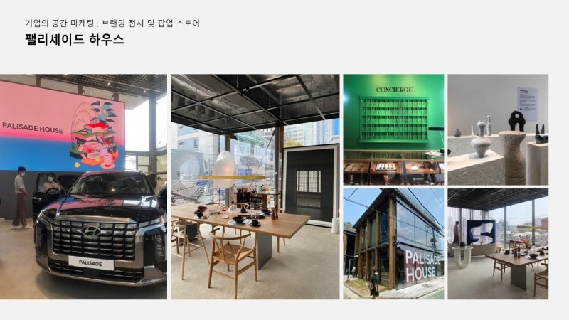 샤넬 팩토리, 구찌 가옥, 보테가 베네타 더메이즈, 디올 성수, 루이비통 오브제 노마드, 에르메스 비스포크, 까르띠에 인투더월드 등 전시 공간에 카페 또는 다이닝을 만들어 머무르면서, 공간 경험의 중요성을 알렸다고 생각된다. 축적된 경험은 브랜드에 대한 인식을 높일 것이고, 감각적이고 좋은 제품 결정으로 이어진다. 당연히 브랜드 홍보는 성공이다.