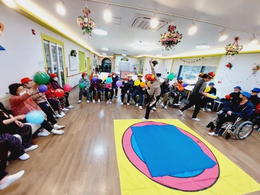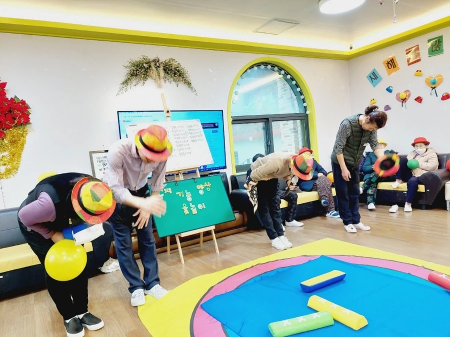 얼마 전에 노치원에서 했던 인지 기능 향상 윷놀이의 사진이다.