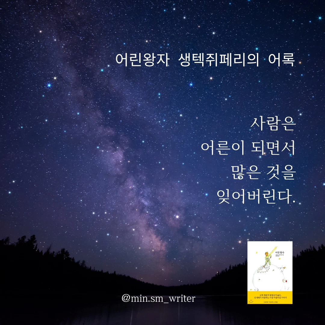 마지막으로 "사막이 아름다운 것은 어딘가에 우물을 숨기고 있기 때문이야....."의 문장이에요. 어린 왕자는 어린이도 보지만 어른들이 더 많이 읽어야 하는 것은 이런 철학적인 메시지가 있기 때문이에요.