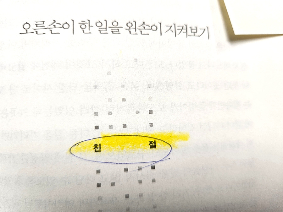 친절이라는 주제의 이야기인데 한동안 내 머릿속에 지진이 일어났다. 나도 친절한 사람이라고 자신했고 그 친절로 타인을 얼마나 힘들게 했을지 생각하니 그냥 넘어갈 수 없었다. 그럼에도 불구하고 나는 여전히 친절해야 한다고 택했으니까 말이다.
