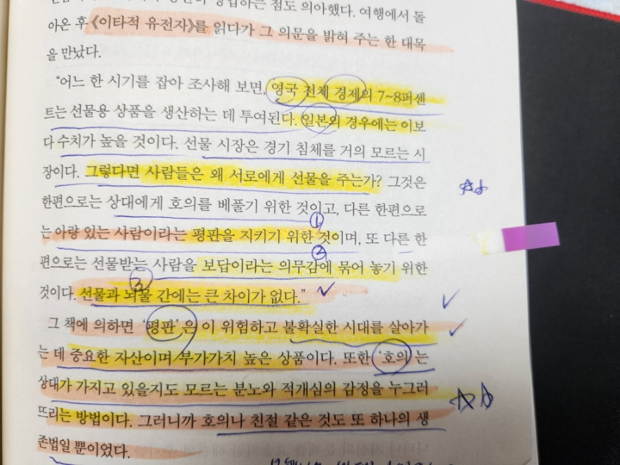 지금은 많이 달라졌다. 위의 <이타적 유전자>로 돌아가서 "평판"에 대해서 생각해 봤다. 누구나 아량 있고 예의 바른 사람이라는 평판을 듣고 싶어 한다. 그것만이 불확실한 시대를 살아가는데 자산이자 부가가치이기 때문이다. 하지만 "호의"는 상대가 가지고 있을지 모르는 분노와 적개심의 감정을 누그러뜨리는 방법이었다. 결론은 호의나 친절은 모두 불확실한 세상을 살아가기 위한 생존법이었다.