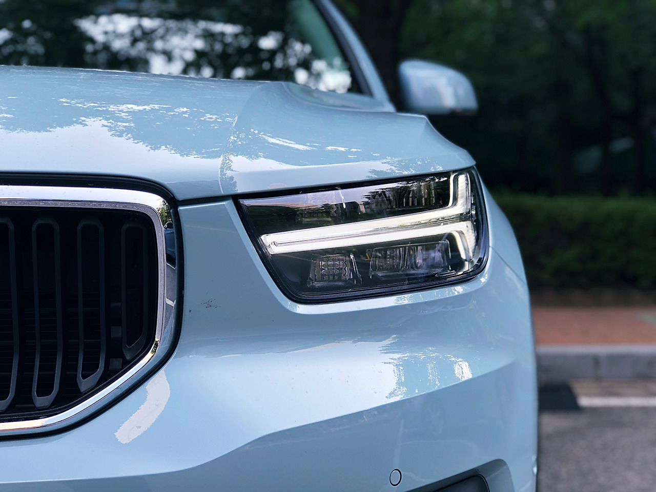 익스테리어 디자인. 큰 키와 큰 휠은 균형 잡힌 자세를 뽐낸다. 여기에 입체적으로 깎인 라디에이터 그릴부터 아름답게 세공된 테일램프까지 이어진 대담한 라인은 볼보 특유의 안정적인 조형미를 구축한다. 볼보의 T자형 시그니처 LED 헤드램프는 주야간 상관없이 주변의 이목을 끈다. 빔 높이를 자동으로 조절해 최적의 시야를 확보하고 반대편 운전자의 눈부심도 방지한다.