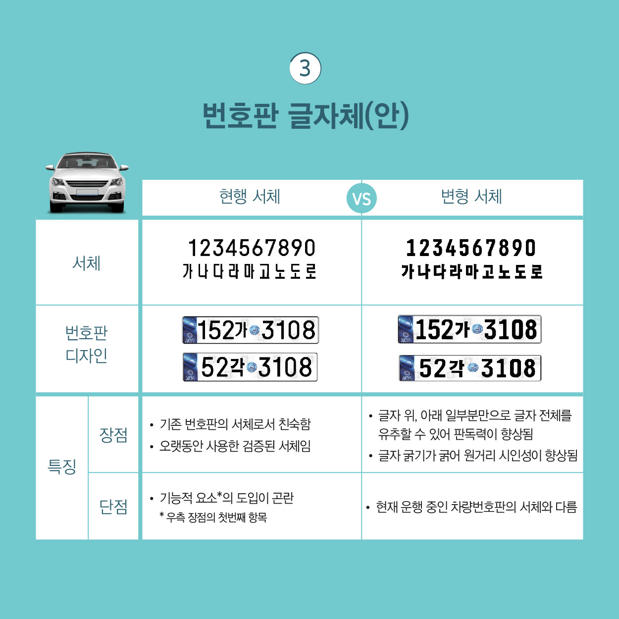 이외 독일 자동차 번호판 서체는 FE(fälschungserschwerende Schrift)라고 불리는 것을 사용합니다. 여기서 FE는 위조방지를 뜻하고요, 독일 헤센주 오펜바흐의 폰트 디자이너 칼게오르크 회퍼가 개발했다고 합니다. 디자인적으로 매우 긍정적인 평가를 받고 있는 이 폰트는 독일뿐만 아니라 몰타, 우루과이, 남아공 등에서도 쓰이고 있는데요, 최근 국내 국토교통부가 발표한 새로운 도안에서도 이 FE 서체를 찾을 수 있습니다. 개인적으로는 FE 서체가 쓰인 걸로 바뀌었으면 좋겠네요(사진 첨부합니다).