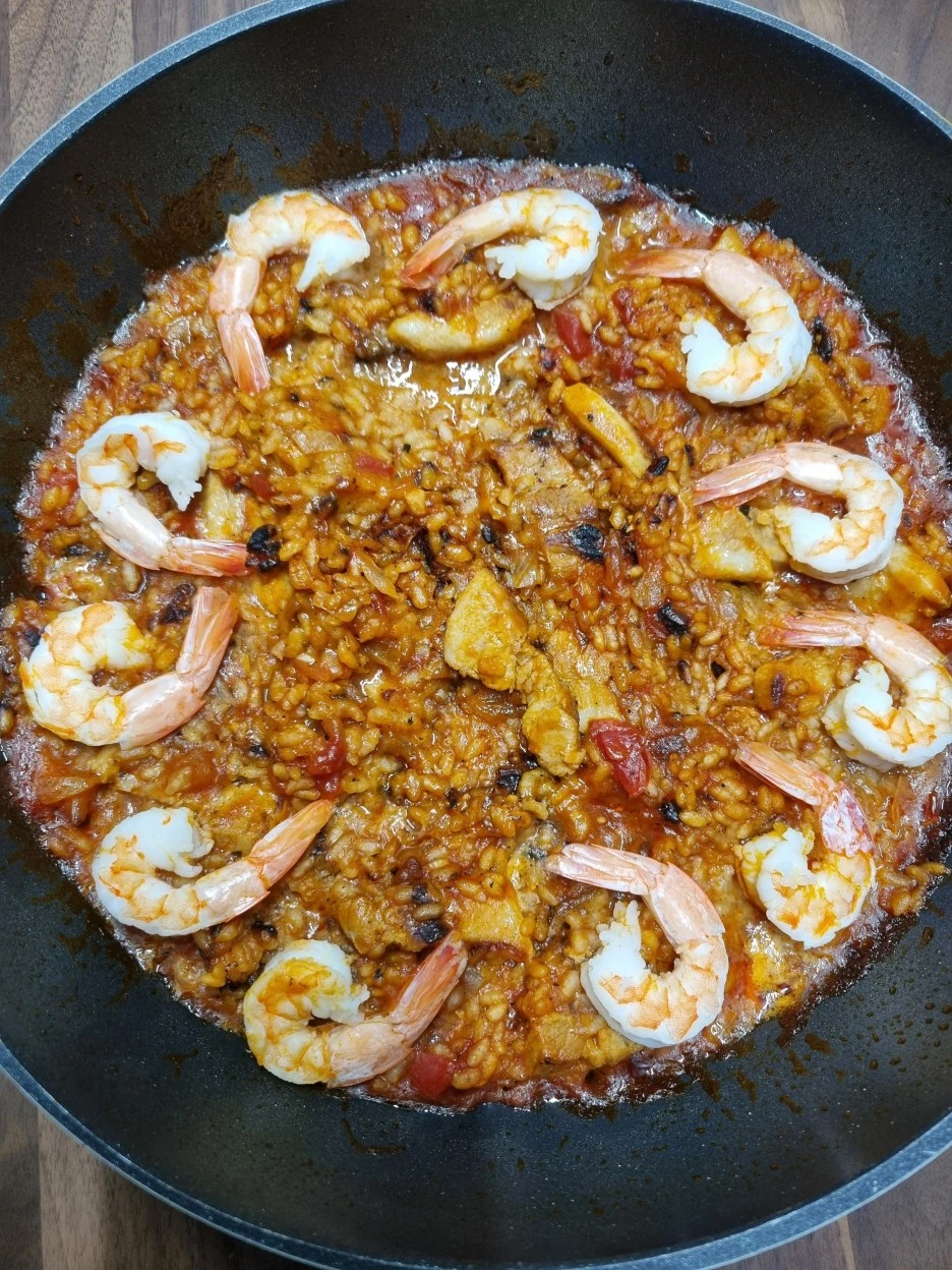 새우 리소토? 빠에야?. 비록 소스는 시판 중인 파스타 소스를 이용했지만 처음으로 지어놓은 밥이 아니라 생쌀을 이용했다. 그래서 쌀이 잘 안 익으면 어찌하나 걱정했고, 무사히 익은 밥을 보고 뿌듯했다.