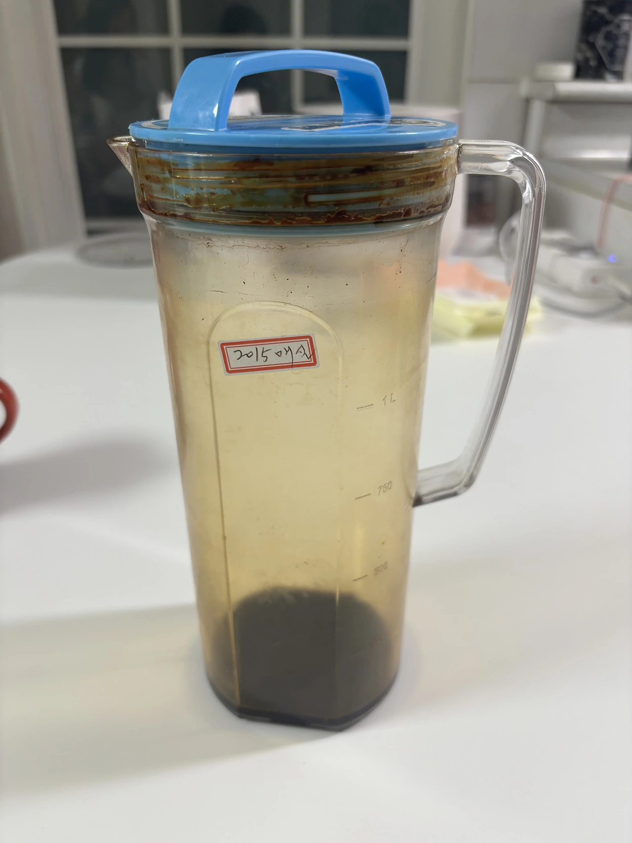 아이가 매실 원액이 든 통을 들고와 묻는다.