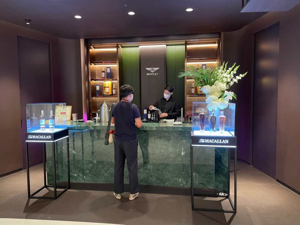 바로 뒤편에는 벤틀리 럭셔리 라이프스타일을 향유할 수 있는 바&라이브러리가 위치해 다양한 음료와 다과, 벤틀리 전용 라이프스타일을 경험할 수 있다.