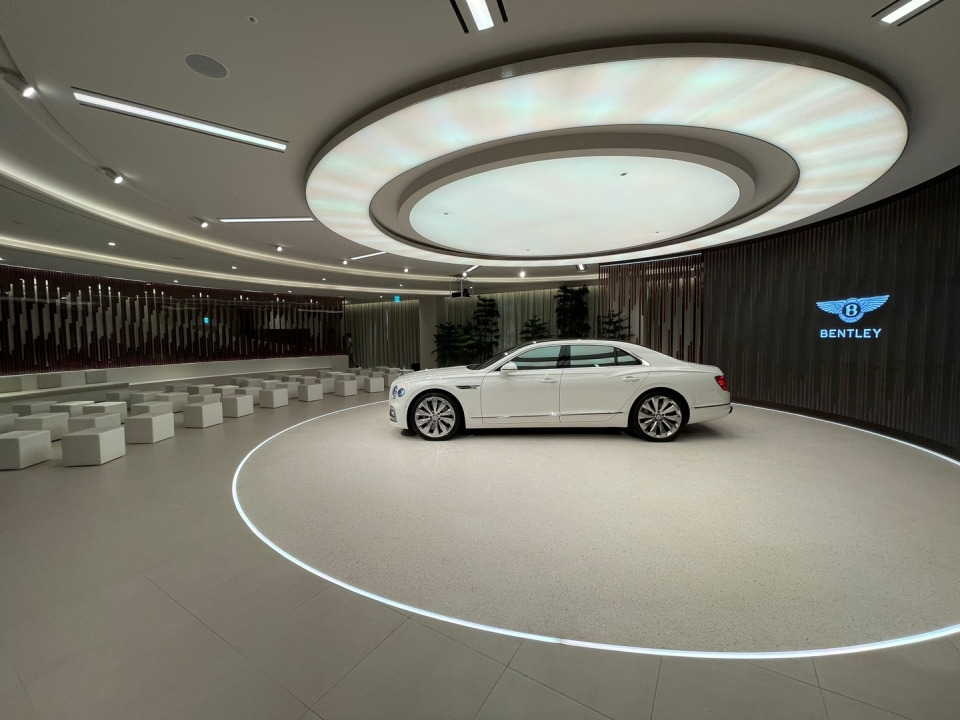 벤틀리타워는 전면이 통유리로 설계돼 시원하고 탁트인 개방감을 제공한다. 1층과 2층은 신차 전시공간으로 인기 SUV 벤테이가를 비롯한 플라잉스퍼와 컨티넨탈GT가 자리 잡고 있다.