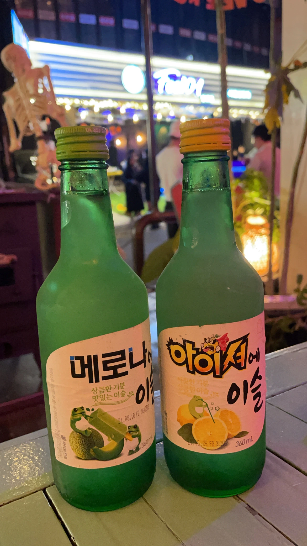 스무 살 때였으면 실랑이했을 텐데 스물다섯 살은 다르다. 이제 사회생활 하면서 돈 버니까 먹고 싶은 거 다 먹기로 했다. ‘다 먹고 살려고 일하는데.‘라면서 과일화채, 오돌뼈볶음, 계란말이까지 야무지게 주문했다. 그리곤 한 친구가 새로운 술이 나왔다면서 아이셔에이슬까지 시켰다. 우리 때는 순하리였는데 요새는 별걸 다 판다며 맛을 봤다. 과일소주를 마시니까 정말 대학 때로 돌아간 기분이었다.