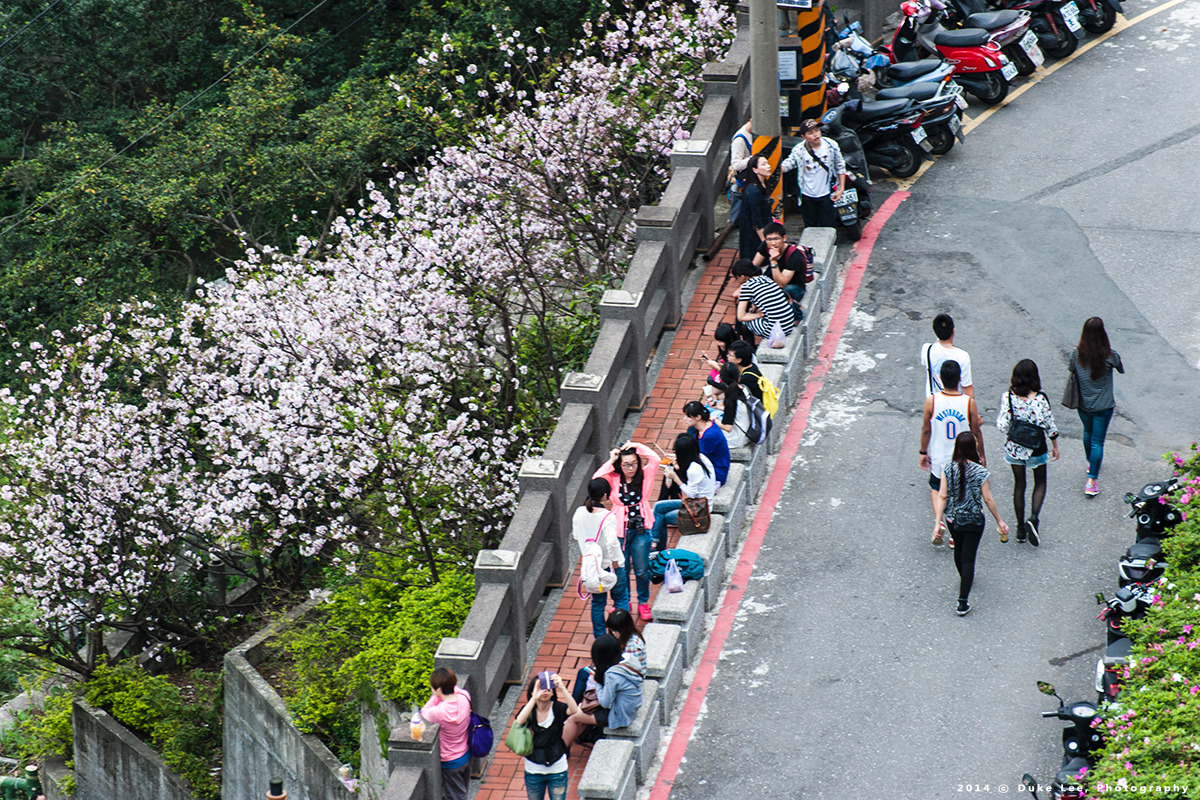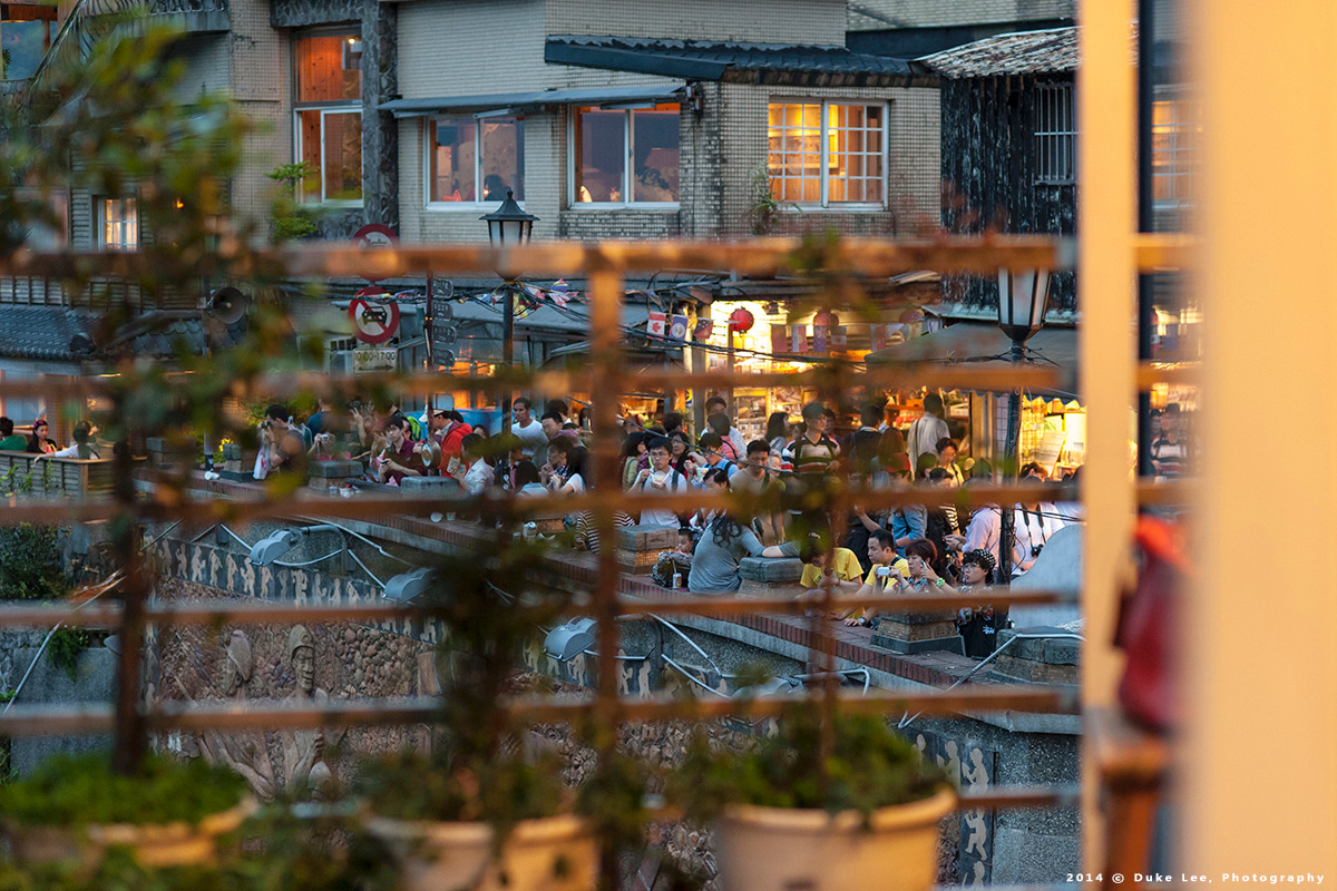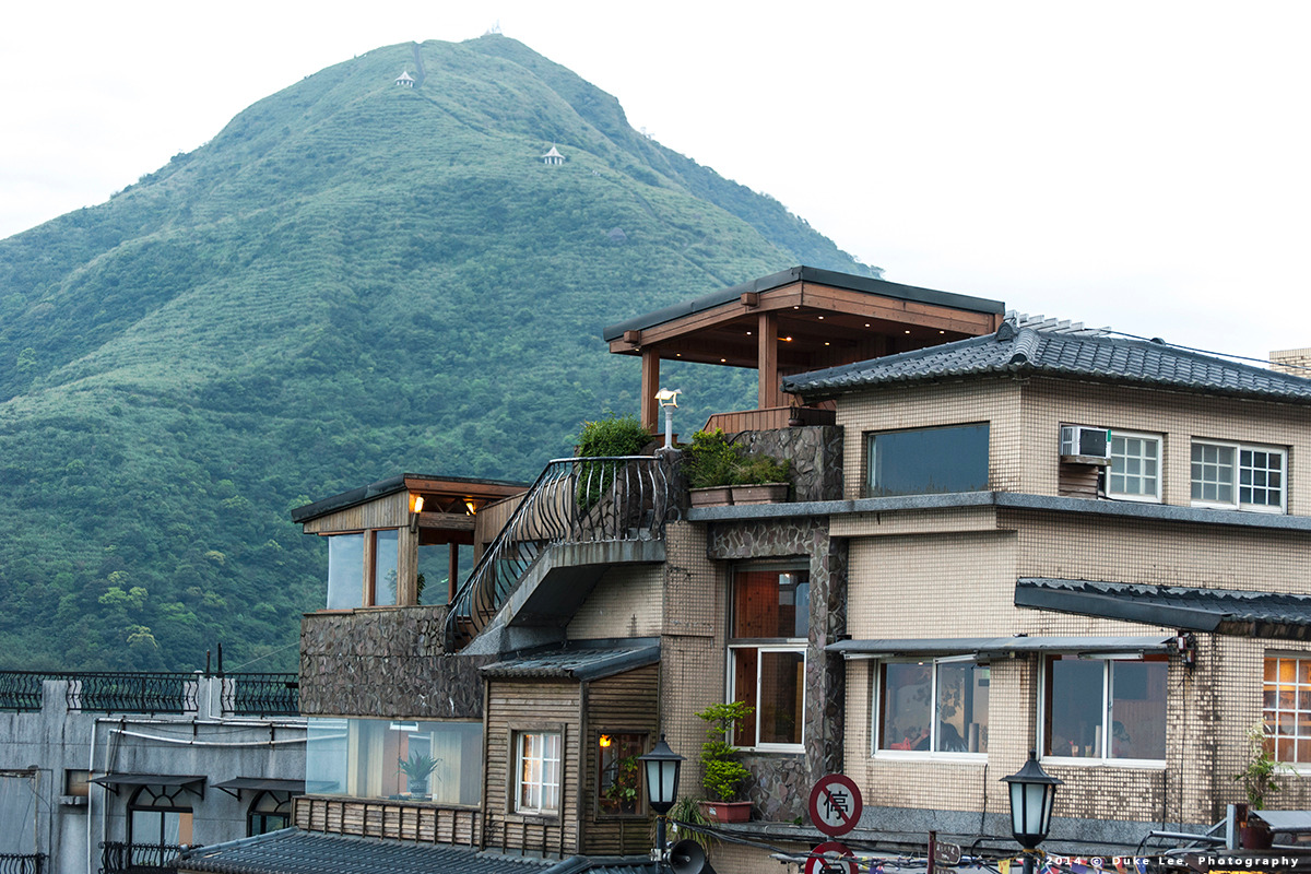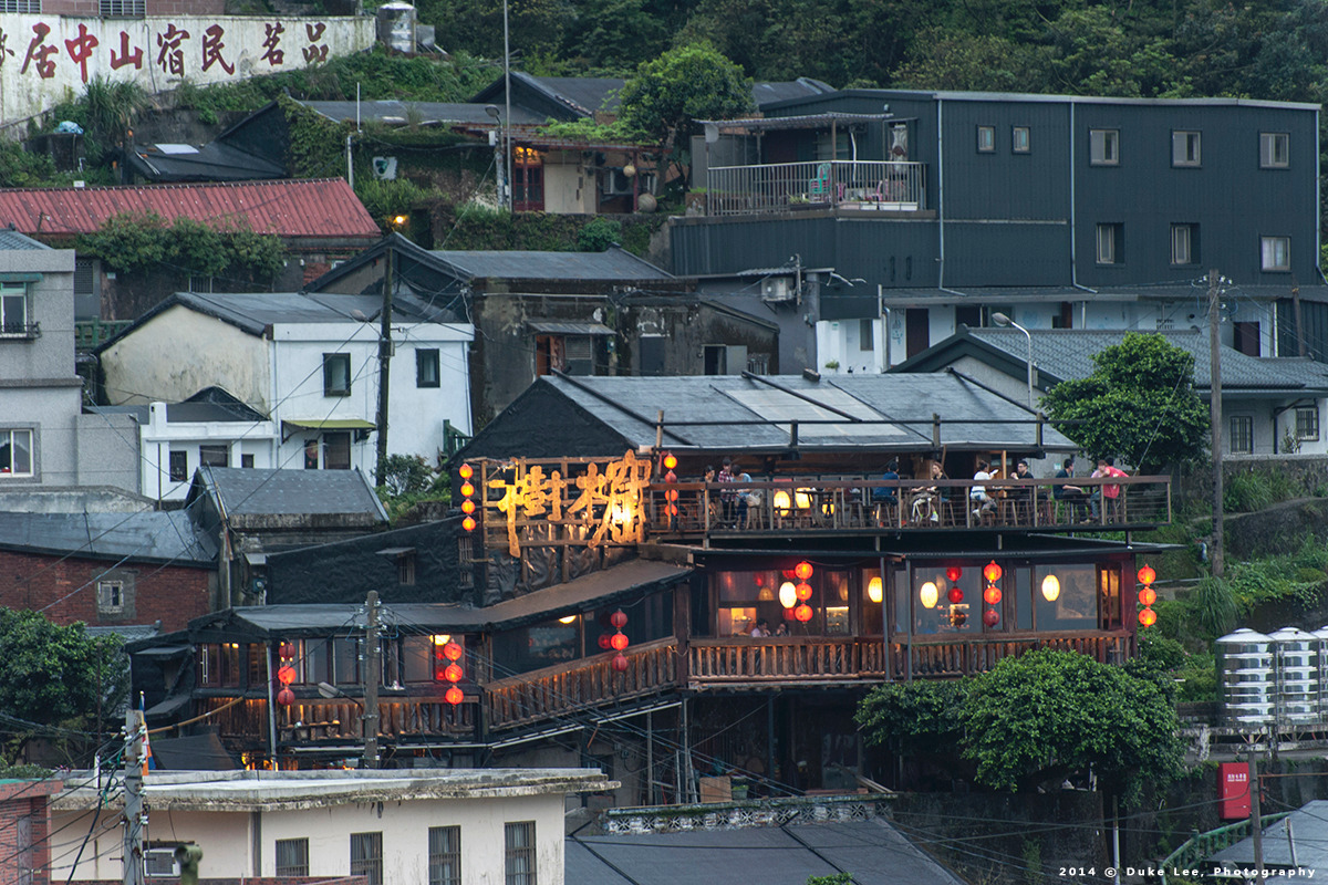 조우펀은 산 중턱 심한 경사면에 위치한 마을이다. 그래서 길과 길이 매우 경사가 가파른 길로 연결되어 있다. 폐광이 된 이후로 관광지가 되면서 다양한 인테리어의 찻집, 카페, 음식점, 기념품점 등이 성업을 하고 있는 마을이다. 내가 찾을 무렵은 봄 꽃이 한참 필 무렵이라 거리에 벚꽃을 구경하는 청춘남녀의 모습이 자연스레 많이 보였다. 산 중턱에 위치한 마을 답게 건물 옥상을 테라스로 활용한 카페나 찻집을 많이 볼 수 있는데 뒤에 보이는 산 정상과 잘 어울리는 풍경이다. 저녁 무렵이 다가오자 건너편에 꽤 큼직한 식당이 조명에 불이 들어오기 시작한다.