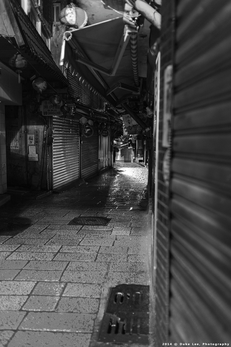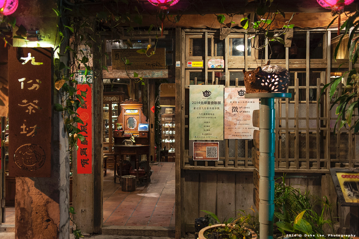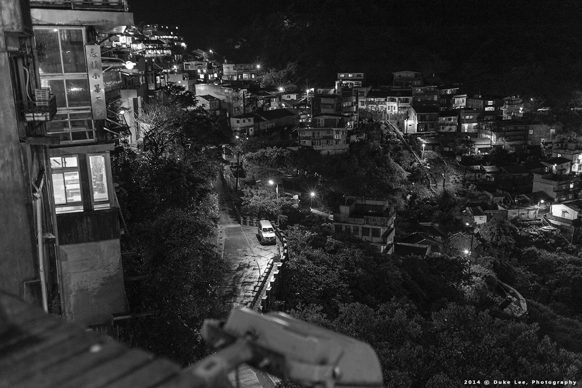 해가 떨어지자 마을 곳곳에 조명 빛이 들어오고 산 등성이에 별무리 같은 느낌이 들어 흑백으로 담았다. 간판을 철제로 구멍을 뚫어 녹이 슬어 갈수록 오래된 정취를 더하게 하였고 문과 벽을 목조로 하여 역시 오래될수록 그 정취가 깊어 보이게 한 점이 인상적인 한 찻집을 보았다. 철제 간판은 한국에도 문론 있으나 대부분이 콘크리트 벽을 이용한 구조이기 때문에 목조 벽이 갖는 따뜻한 느낌을 주지는 않는다. 그런 점에서 새것 만을 찾는 한국과는 대조적인 모습이라 할 수 있겠다. 조우펀은 대도시가 아니기 때문에 거의 아홉시 정도면 모든 상점들이 문을 닫는다. 그 사이에 걸려 있는 홍등 사이로 여러 사람들이 지나가는 모습이 시선을 끌었다. 아마 화장실을 단체로 다녀오는 길이었나 보다. ㅎㅎ