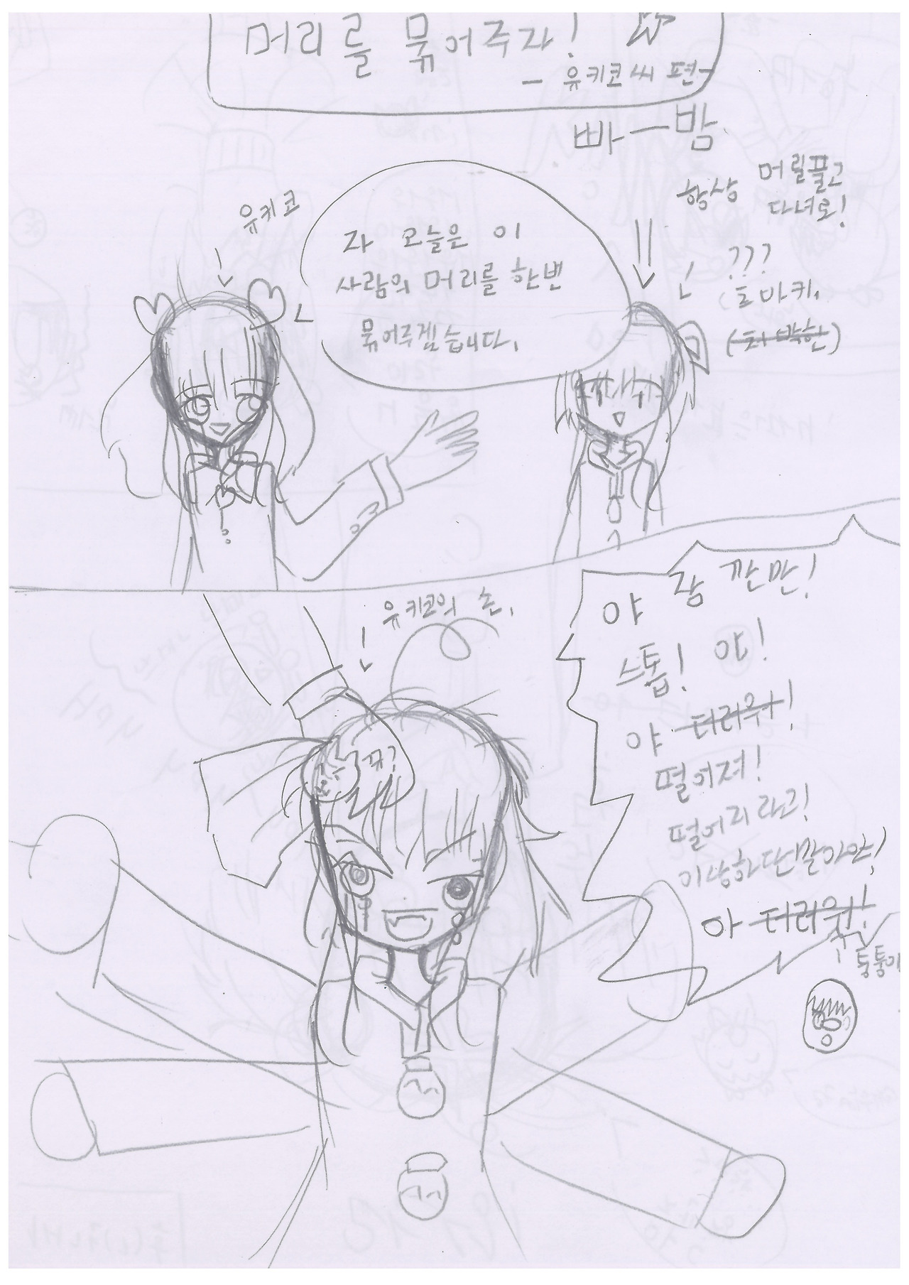 츠바키는 멍하니 보다가 막상 유키코의 손이 자신의 머리를 만지자
