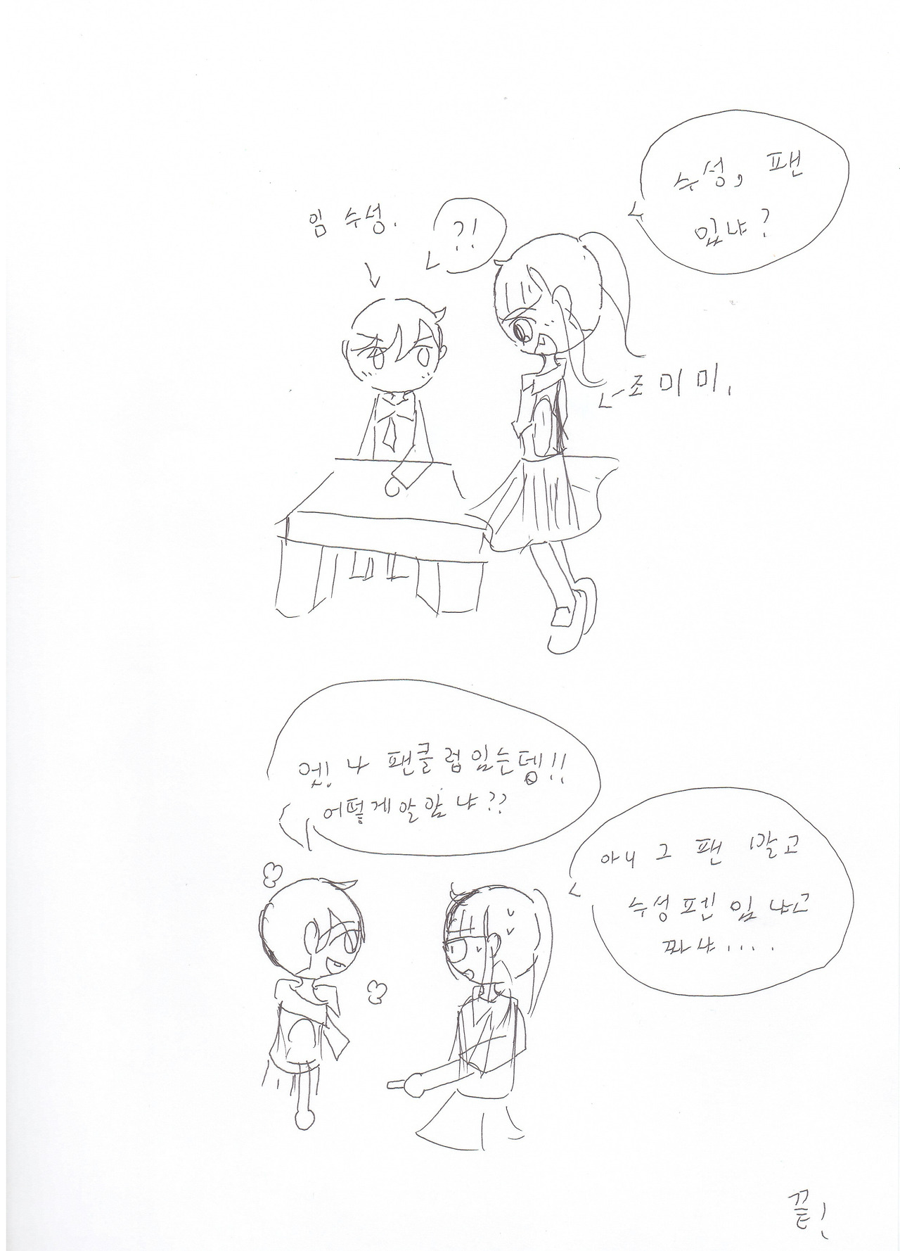 "아니 그 팬 말고 수성펜 있냐고... 짜샤..."