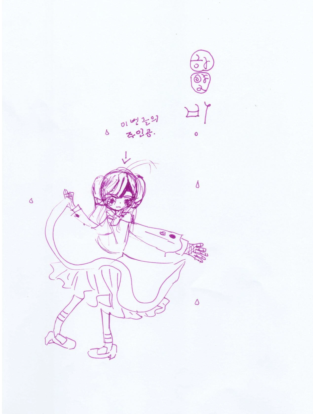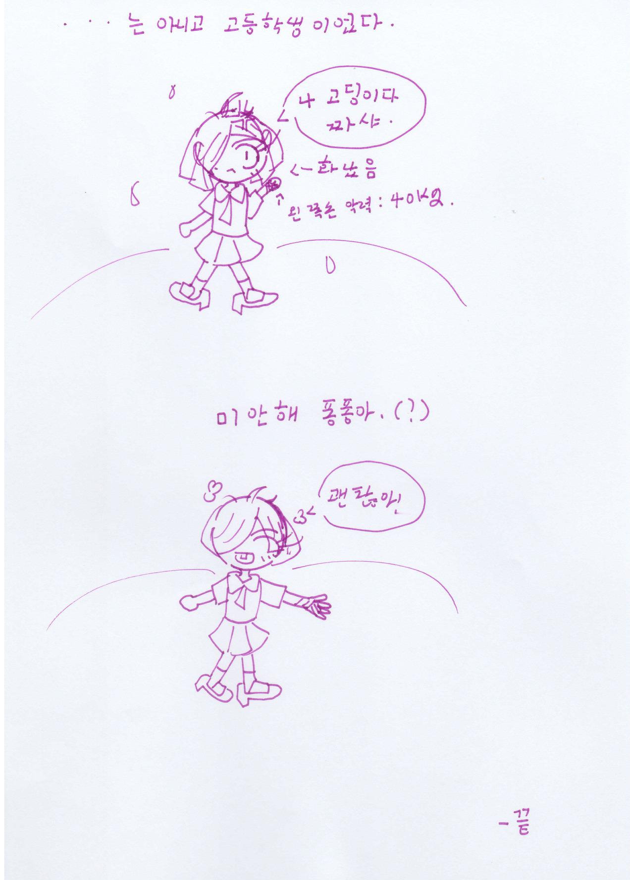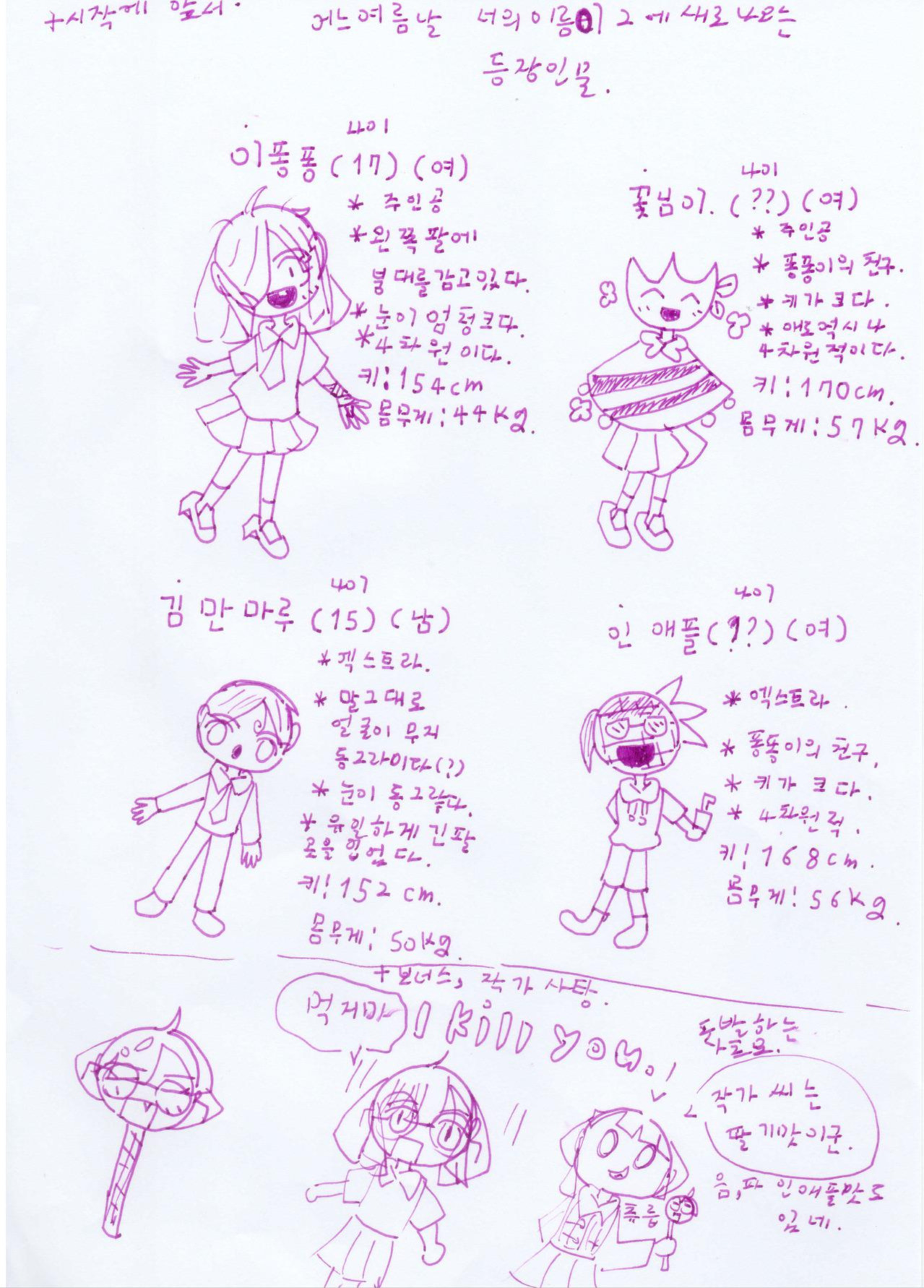 나츠요와 퐁퐁이의 얼굴을 섞은 것도 그려봤어요.
