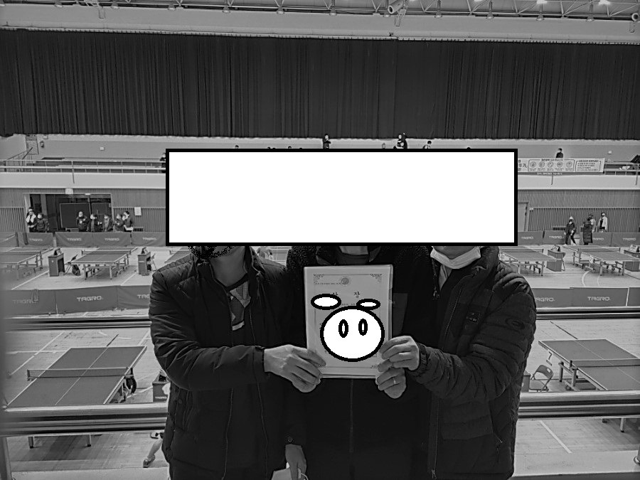 우리 탁구장 출신 c부 단체전 a팀과 b팀 둘 다 공동 3위를 기록하는 순간이었다.