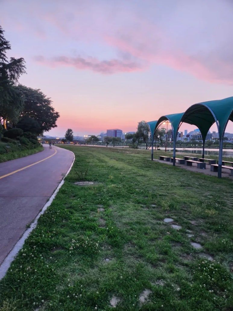 퇴근하고 저녁이면 무작정 나선다. 설거지하고 재활용 쓰레기, 음식물 쓰레기도 함께다. 자전거 손잡이에 걸어 엘리베이터를 타고 내려간다. 쓰레기를 버리고 자전거 위에 앉아 강변길에 오르면 비로소 숨쉬기가 편안해진다. 보이는 것도 화사하니 변하고 피부에 와닿는 바람도 시원해진다. 상쾌한 기분에 페달을 열심히 구른다. 해가 기울어 발갛게 물드는 지금이 너무나 좋다. 어쩌면 이 순간을 위해 이 순간이 존재하기에 살아갈 수 있는 게 아닐까 할 정도다. 강변길에는 부쩍 뛰는 사람이 많아졌다. 그들이 뛰는 모습을 보노라면 나도 얼른 자전거에서 내려 뛰고 싶다는 생각이 든다. 저들은 모두 뛰는데 나 혼자 자전거를 타도 되나? 저들 속에 동참해야 하는 게 아닐까? 그런 생각이 들지만 자전거라도 열심히 타면, 페달링을 쉬지 않고 하면 운동량에 있어서 조금이나마 쌤쌤이 될지도 모르지 하며 달리기 욕구를 억눌러본다.