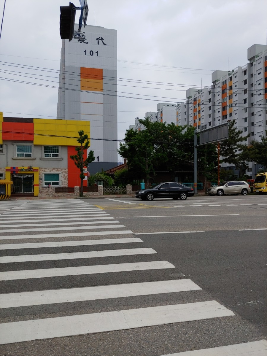 현대아파트 정문이다. 두근두근 지켜보는 마음. 위 쪽에 복음병원과 교대가 있고 아래쪽에는 천수교가 기다린다.
