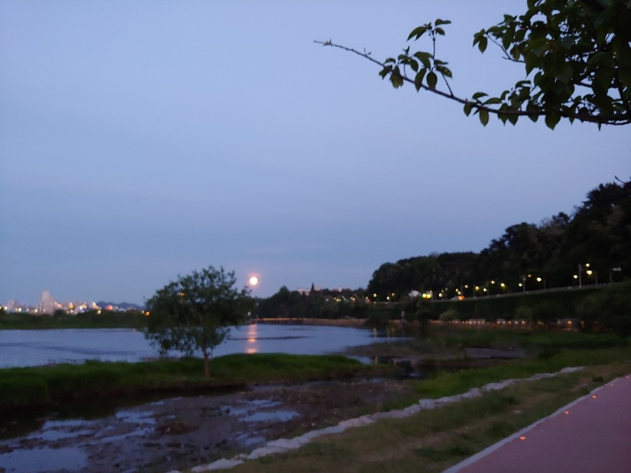 보름달이 뜬 저녁 시간, 주약동에서 새벼리로 접어든다.