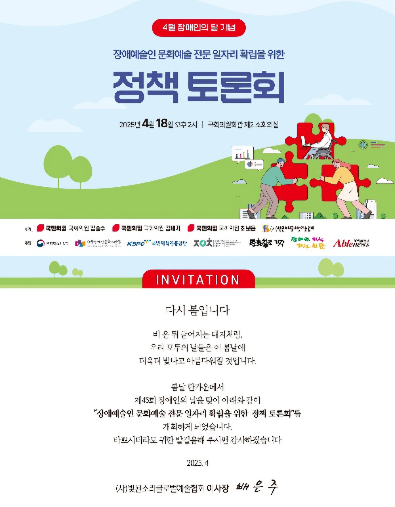 주최 : 국민의힘 김예지 김승수 최보윤 국회의원, 빛된소리글로벌예술협회