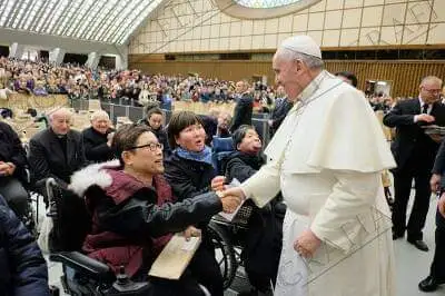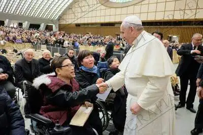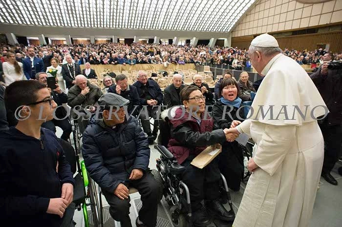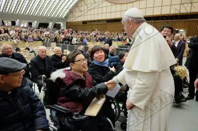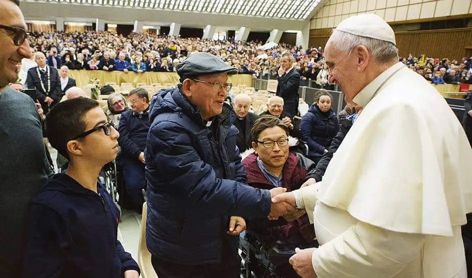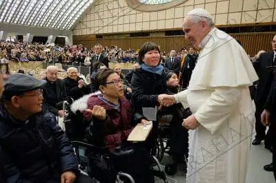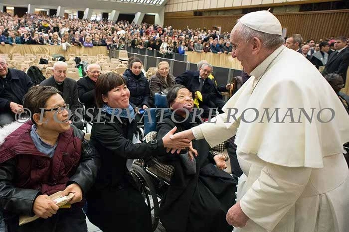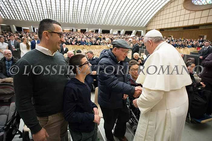 ▲ 개혁적 교황 프란치스코..1월 28일 교황청 수요 일반 알현에서 프란치스코 교황을 만나고 있는 필자