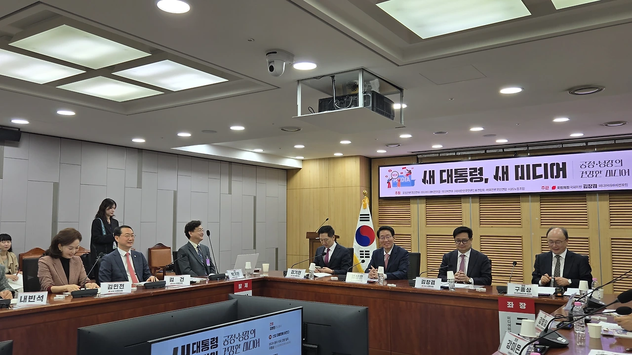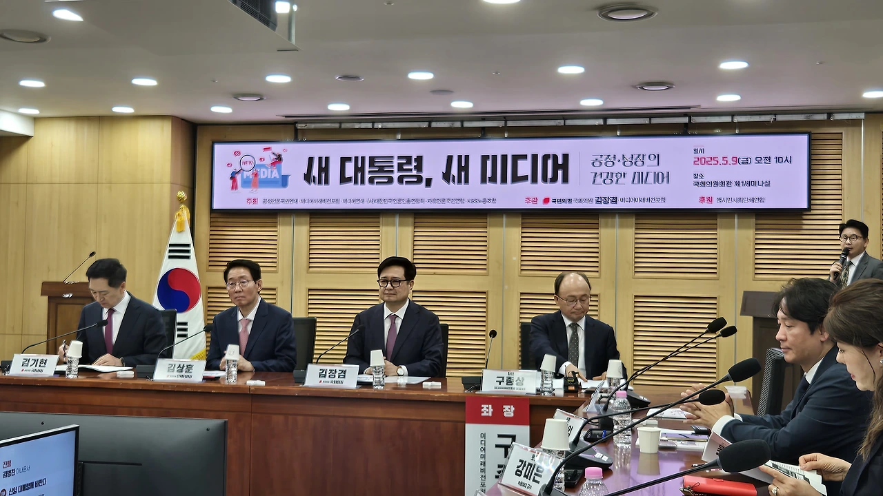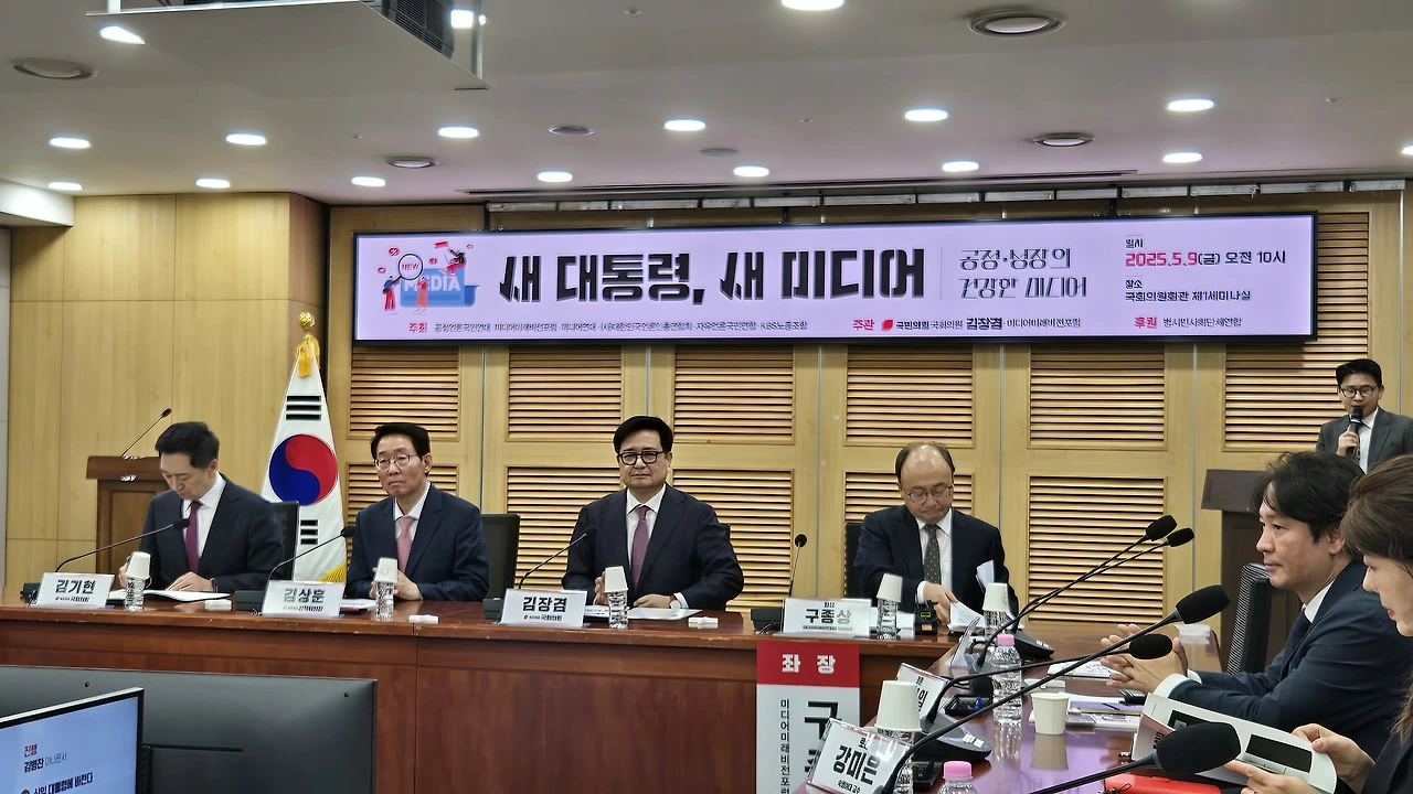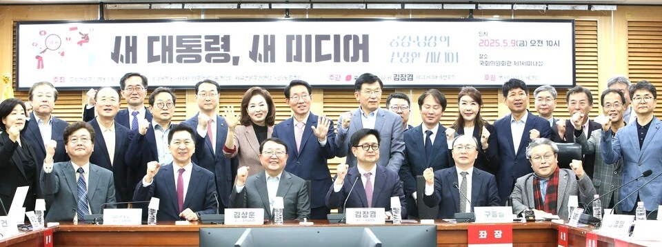 미디어미래비전포럼(상임대표 구종상)과 국민의힘 김장겸 의원(국회 과학기술정보방송통신위원회)은 지난 9일 오전 국회의원회관에서 미디어 생태계 전반이 안고 있는 구조적 문제를 진단하고 실질적 해법을 모색하기 위해 '새 대통령에게 바란다 - 공정과 성장의 기반 위에서 건강한 미디어 정책과 비전'을 주제로 토론회를 개최하고 'K-콘텐츠 전략화', '토종 OTT 육성', '공영방송 개혁' 등을 주요 내용으로 한 언론 정책을 제시했다.