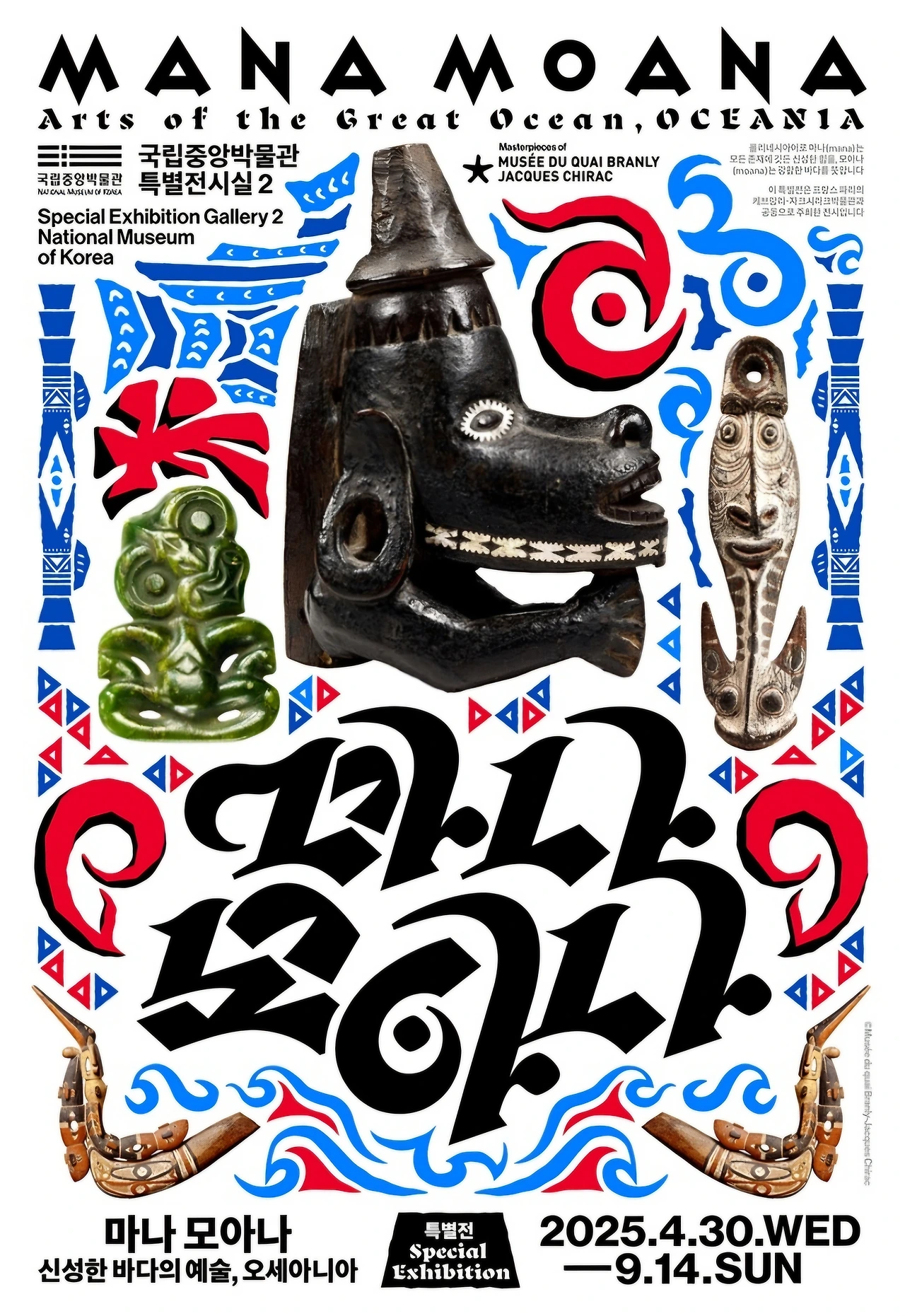 특별전 ‘마나 모아나-신성한 바다의 예술, 오세아니아’는 국립중앙박물관과 프랑스 케브랑리-자크시라크 박물관이 공동으로 기획한 전시로, 18세기부터 현대까지 오세아니아의 전통 예술품과 현대 작품을 소개합니다. 카누와 조각, 가면과 악기, 석상과 장신구, 직물에 이르기까지 오세아니아 사람들의 삶과 철학을 생생히 전달하는 전시품을 만나볼 수 있습니다.
