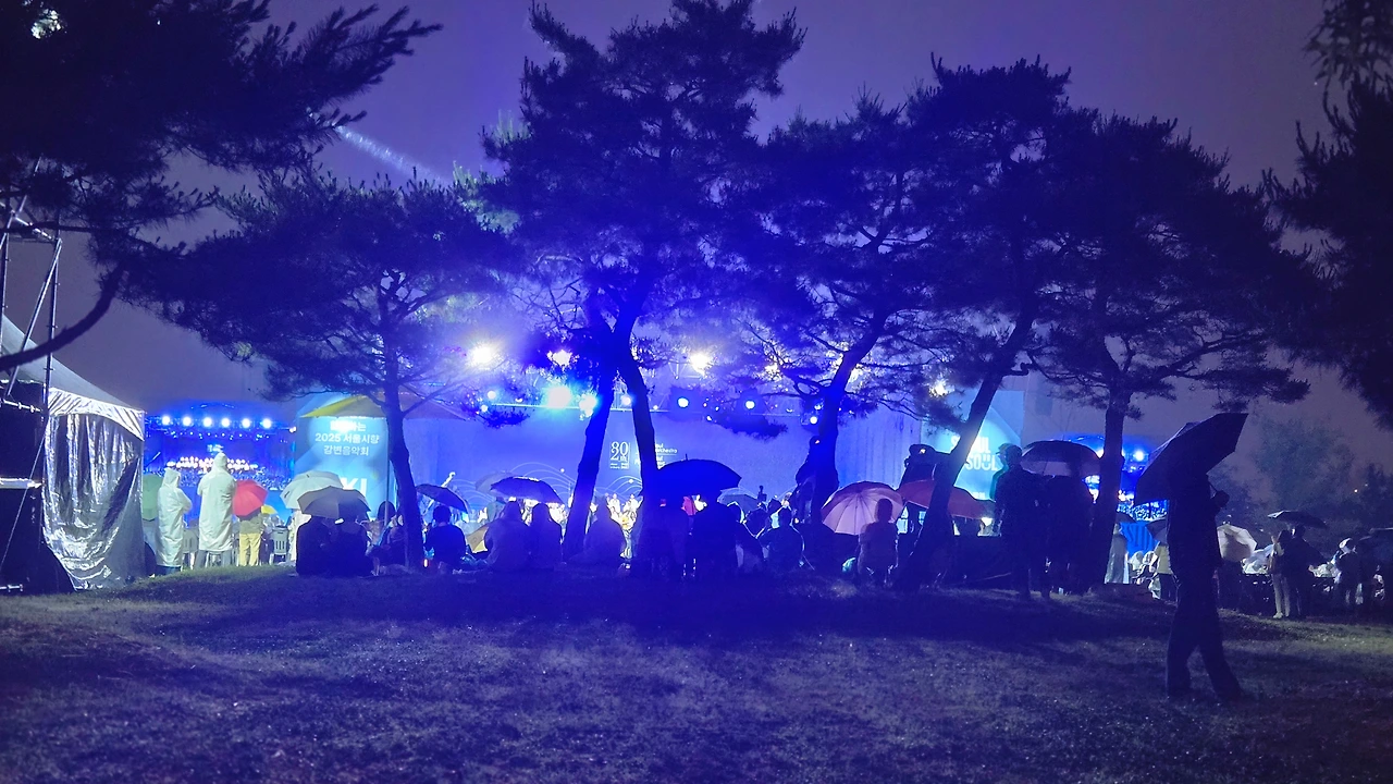 - 6월 늦봄..비가 부슬부슬 내리는 한강공원 물빛무대 앞 광장..비옷을 입고 서울시향 강변음악회에 빗소리와 음악의 하모니에 젖어들며 함께 했습니다.