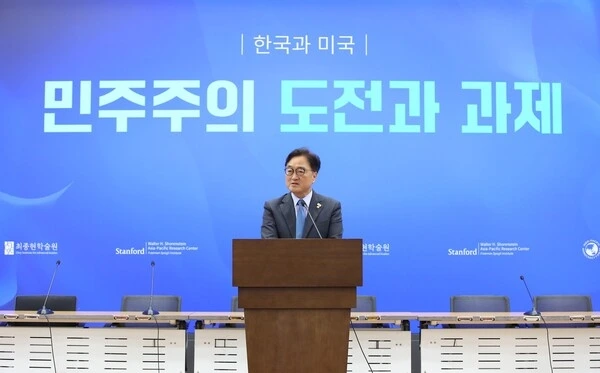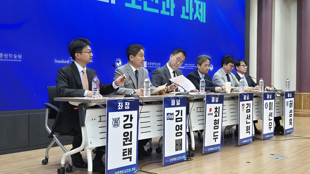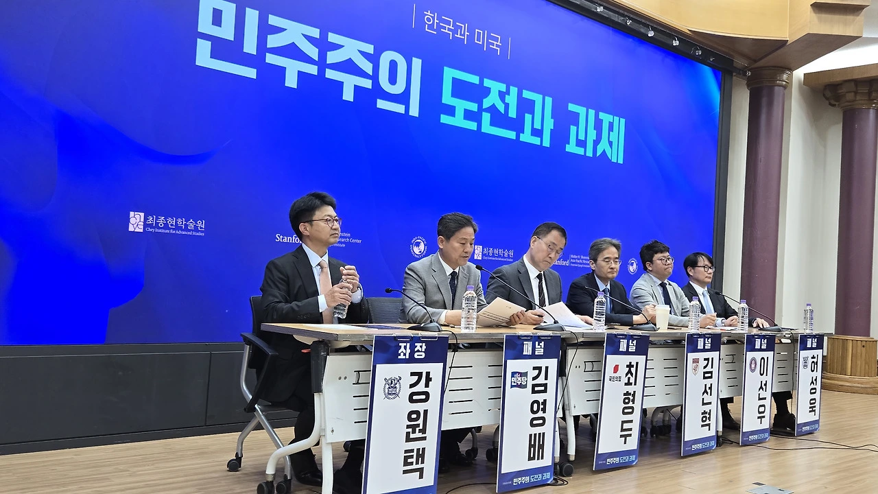 19일 최종현학술원(이사장 최태원 SK 회장)과 스탠퍼드대 아시아태평양연구소, 인도태평양민주주의포럼이 공동 주최하고, 국회의원회관 제1소회의실에서 열린 ‘민주주의미래포럼’에서 정치권과 학계 인사들은 “한국의 민주주의가 심각한 후퇴의 흐름에 놓여 있으며, 정치 양극화와 경직된 권력 구조가 지속되는 한 장기적 발전을 기대하기 어렵다”고 입을 모았다.