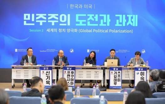 ‘민주주의 도전과 과제’를 주제로 한 이번 포럼에서는 우원식 국회의장을 비롯해 세계적 베스트셀러 ‘역사의 종언’으로 저명한 정치학자 프랜시스 후쿠야마 미국 스탠퍼드대 교수, 인도태평양민주주의포럼(IPDF) 소속인 김영배 더불어민주당 의원과 최형두 국민의힘 의원, 이숙종 성균관대 특임교수, 김선혁 고려대 교수, 기요테루 츠츠이 스탠퍼드대 교수, 허성욱 서울대 교수, 이선우 전북대 교수, 디디 쿠오 스탠퍼드대 프리먼-스포글리 국제문제연구소(FSI) 센터 펠로우가 참여했다. 사회는 신기욱 스탠퍼드대 아시아태평양연구소 소장과 강원택 서울대 국가미래전략원 원장이 맡았다.