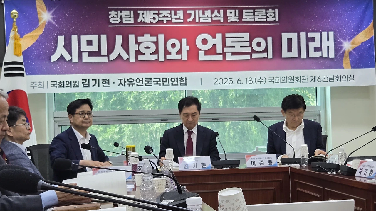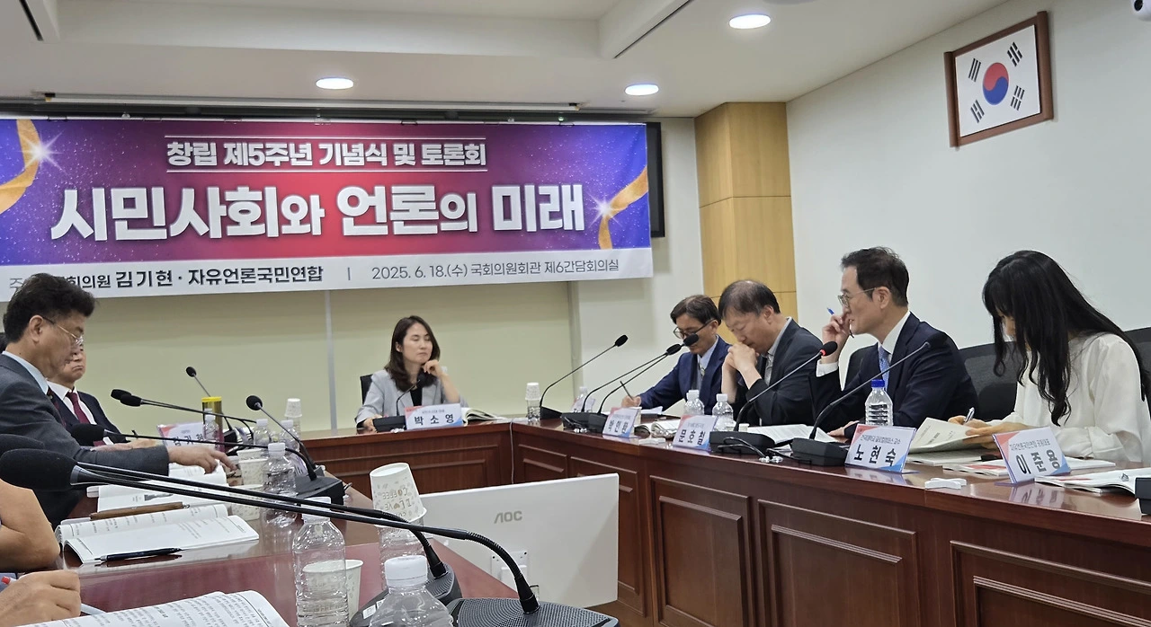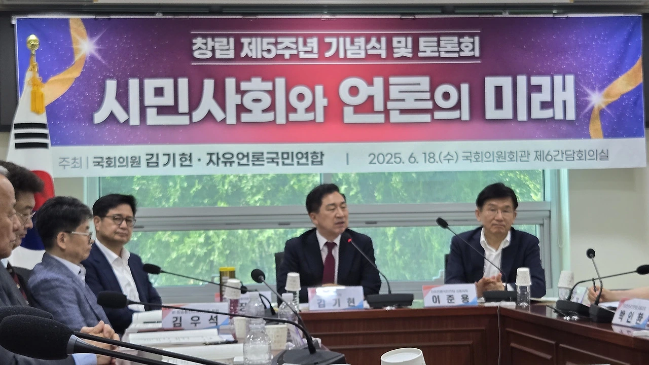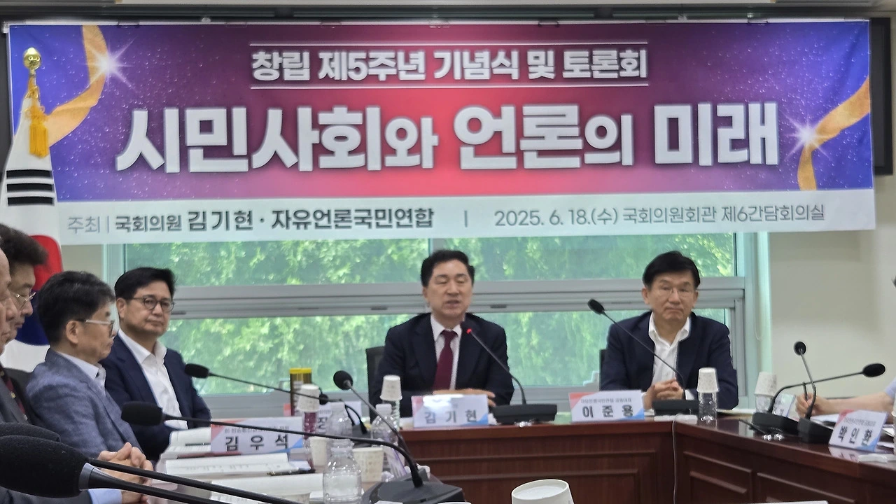 이날 열린 자유언론국민연합 5주년 창립 기념토론회에는 국민의힘 송언석 신임 원내대표, 김기현 의원, 김장겸 의원 등과 언론학계 주요 교수진과 현장 실무자들이 참석했다.