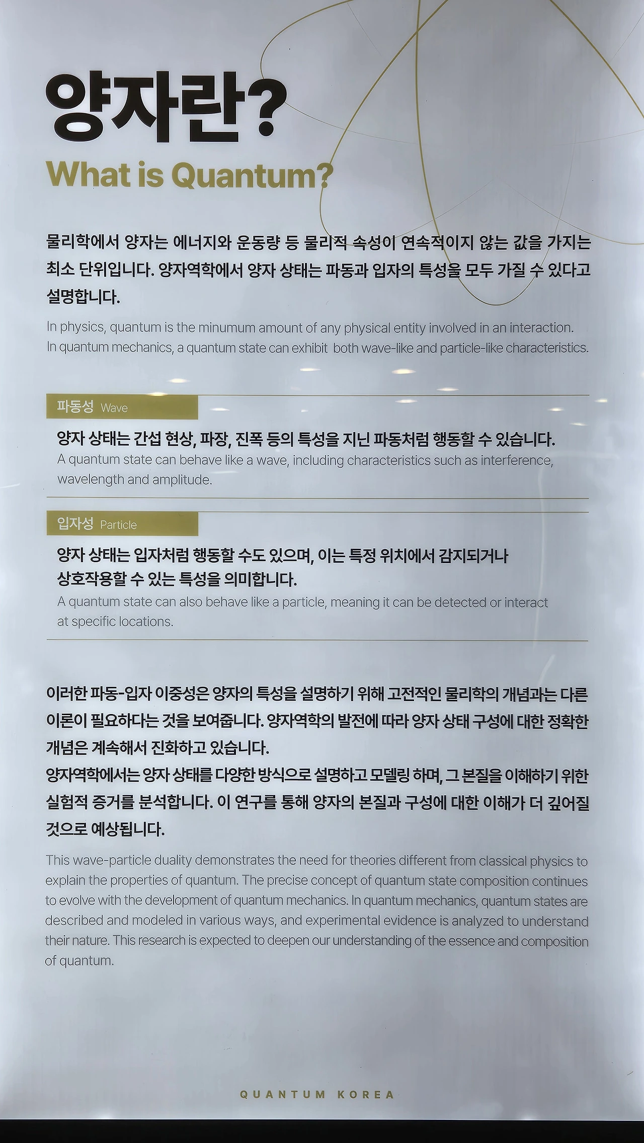- 오늘 오후는 양자 컴퓨터 관련 새로운 지식을 습득하는 즐거움에 푹 빠졌던 시간이었다. 그것은 동시에 대한민국의 미래 모습을 미리 보는 보람된 시간이기도 했다. 이런 전시회와 강연에 초롱초롱한 눈망울의 청소년들이 넘쳐날 정도로 많이 보인다는 사실이 또 나를 감동시켜 울컥하게 만들었다.