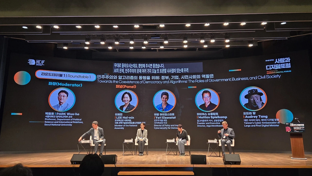 대만의 첫 디지털 장관(2016-2024)이자 현 사이버 대사인 오드리 탕은 "기술이 민주주의를 해킹하고 있다"고 경고하며 "하지만 우리는 디지털을 되찾을 수 있고, 그것은 협력과 집단지성의 힘으로 가능하다"고 강조했다. 그는 '디지털 집단지성은 여전히 민주주의의 미래인가'라는 주제의 기조발제를 통해 기술이 감시와 검열, 사회적 점수로 이어지는 독재의 도구가 되고 있다고 진단했다.