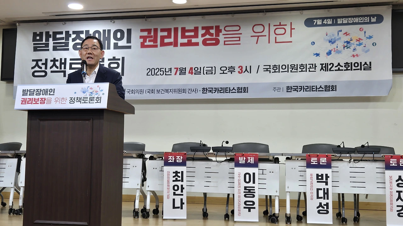 특히 "보호자의 교령화로 돌봅의 공백이 날로 커지고 있으며 현행 제도에서는 다양한 생활 환경과 개별적 수요를 충분히 반영하지 못하고 있다"고 지적했다.이어 "국민의힘은 그간 발달장애인 권리 보장을 위해 다양한 입법과 정책적 노력을 다해 왔지만 대책은 부실하다"고 설명하며 국회가 나서 발달장애인의 대책을 마련해야 한다고 강조했다.