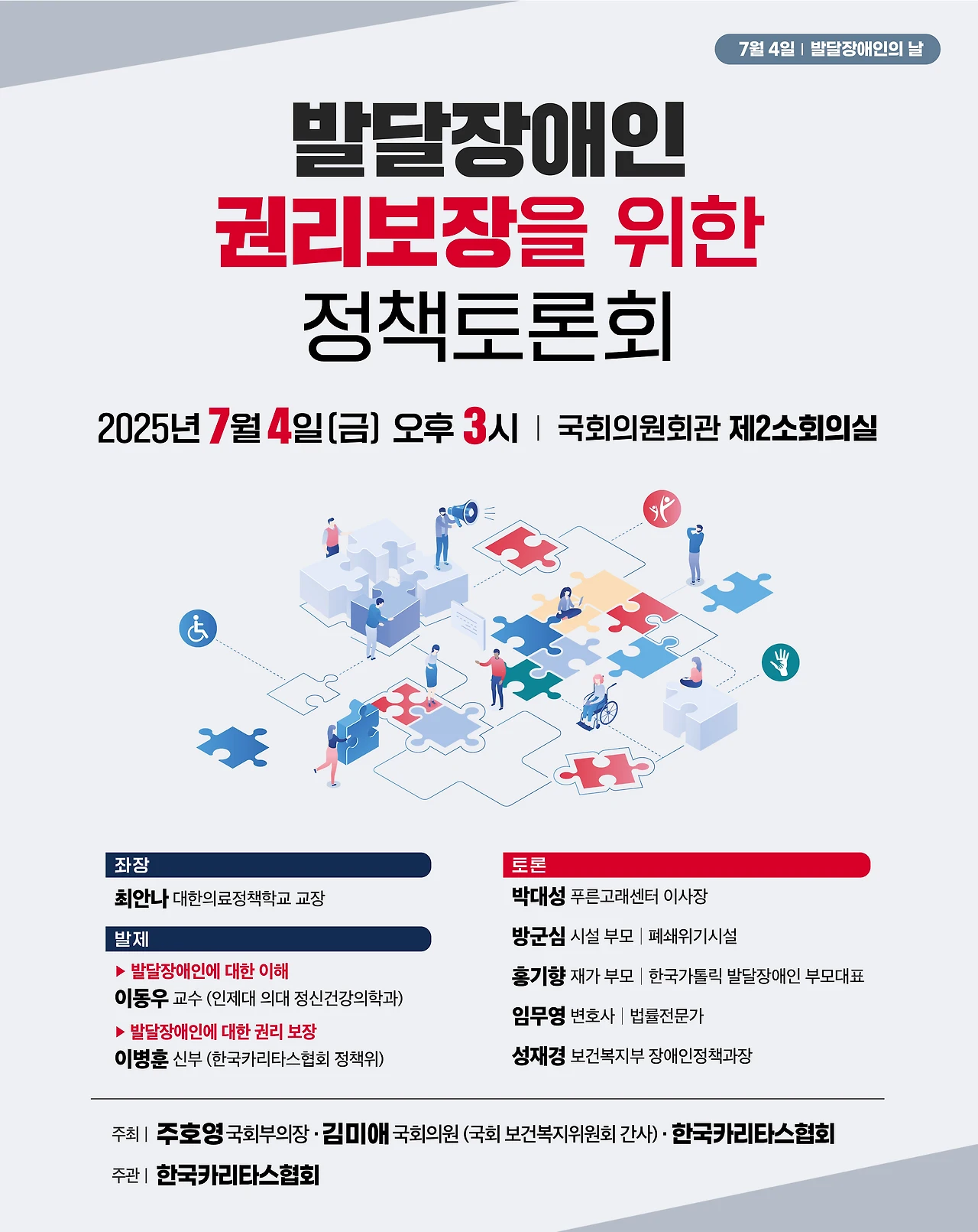 4일 서울 여의도 국회의원회관에서 열린 ‘발달장애인 권리보장을 위한 정책토론회’에는 한국카리타스협회 이사장 조규만 주교를 비롯해 발달장애 분야 전문가와 관계부처 실무자, 부모단체 등이 참석해 다양한 의견을 나눴다.