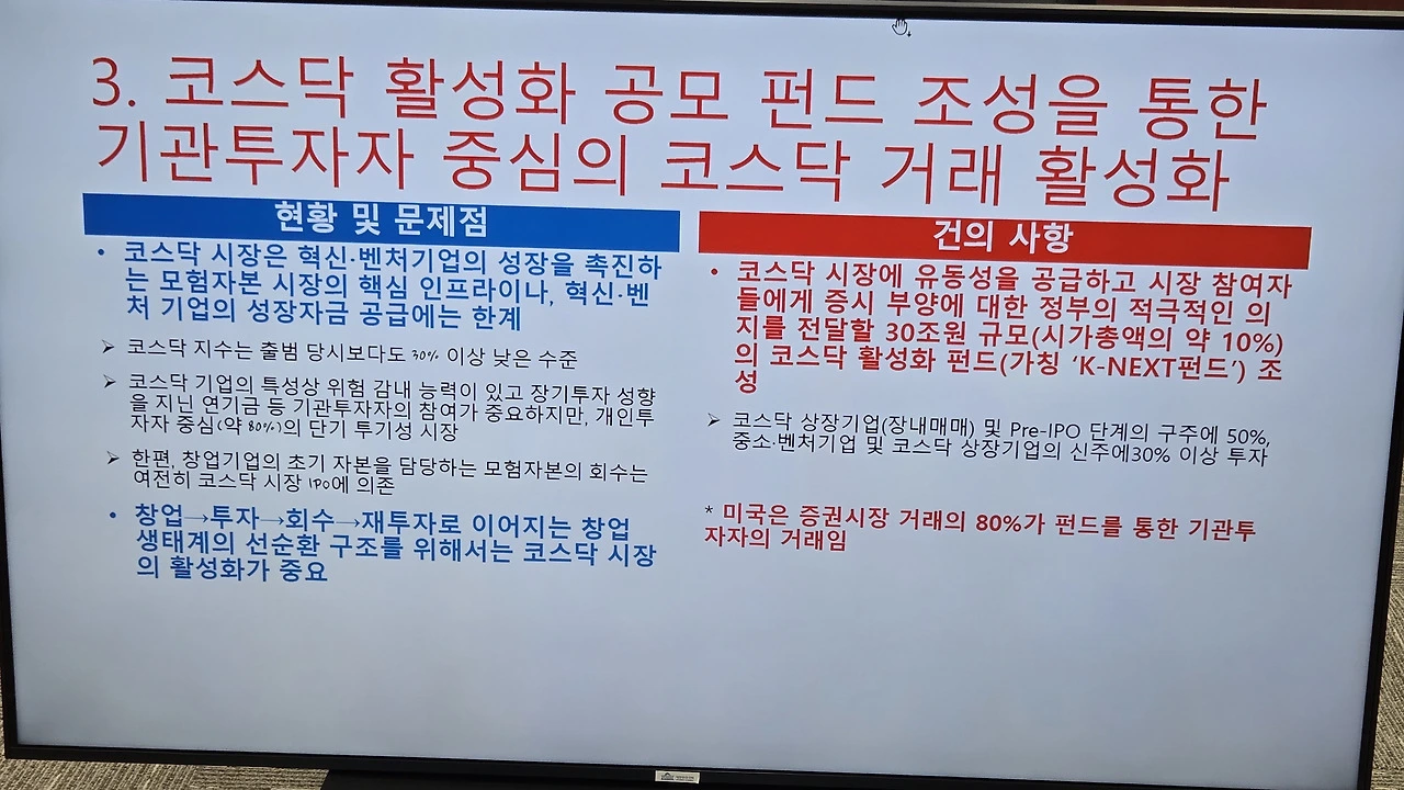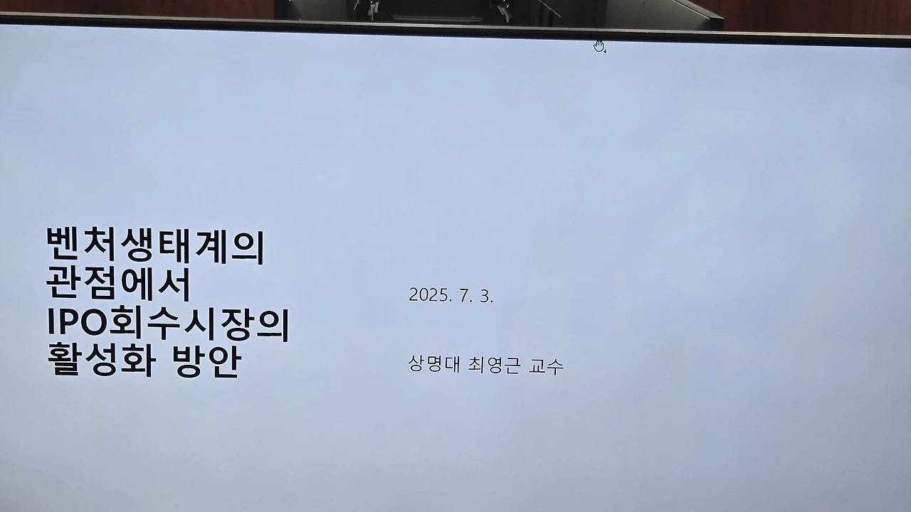 최영근 교수는 "벤처생태계의 선순환을 위해 정부는 민간 주도의 회수시장 기반을 간접적으로 지원해야 한다"며 "코스닥 시장의 독립성과 상장제도 유연성 확보를 위한 제도적 보완이 필요하다"고 강조했다.