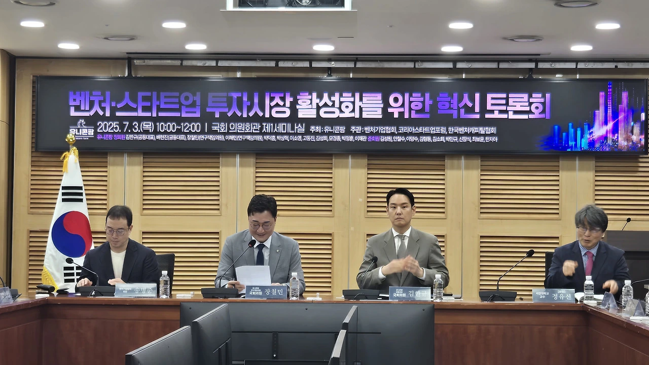 장철민 더불어민주당 의원은 "벤처와 스타트업이 회수를 통해 재도전할 수 있는 환경을 조성해야 한다"며 "투자시장이 혁신기업의 성장 기반이 되도록 제도 정비가 시급하다"고 밝혔다.