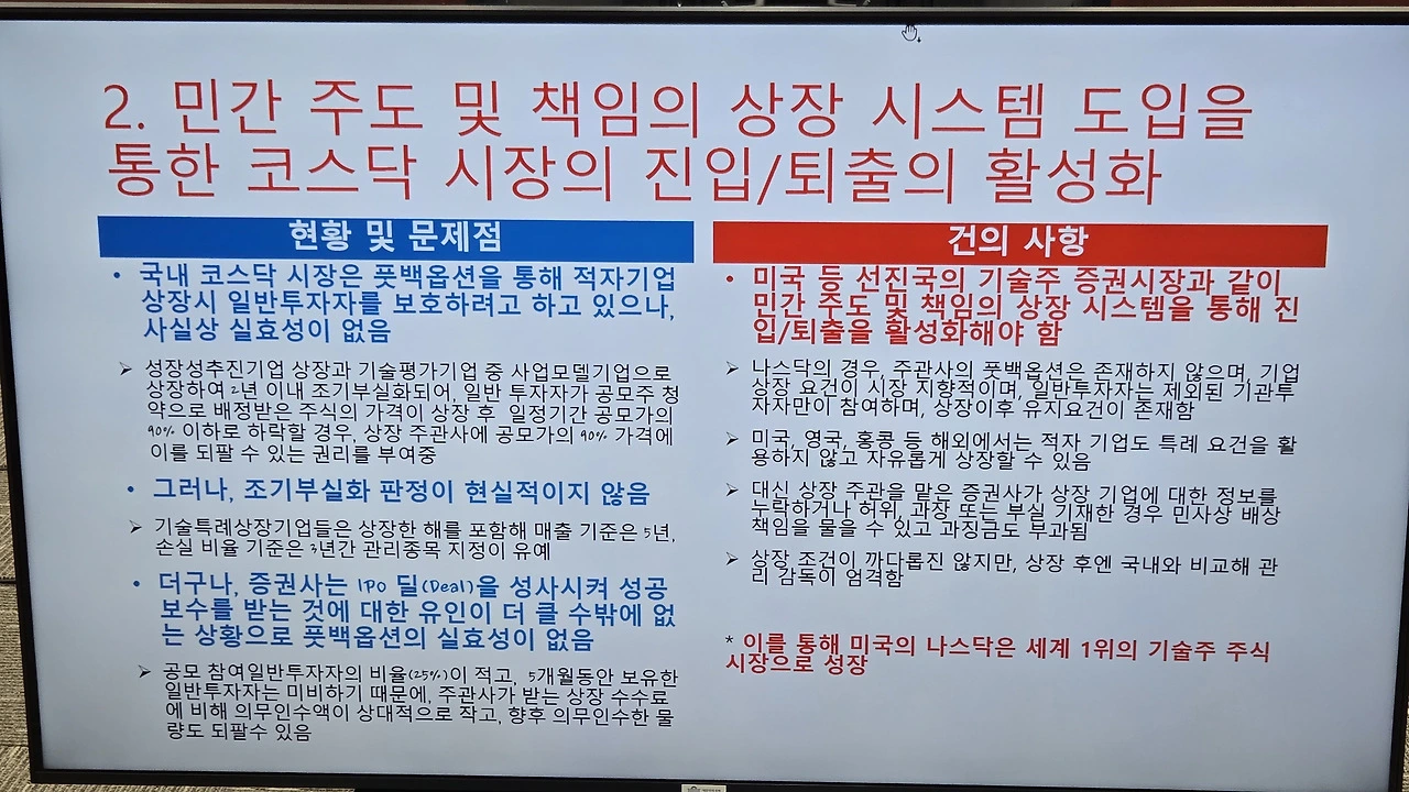 기술특례상장 등 코스닥 시장 제도 개선 방안