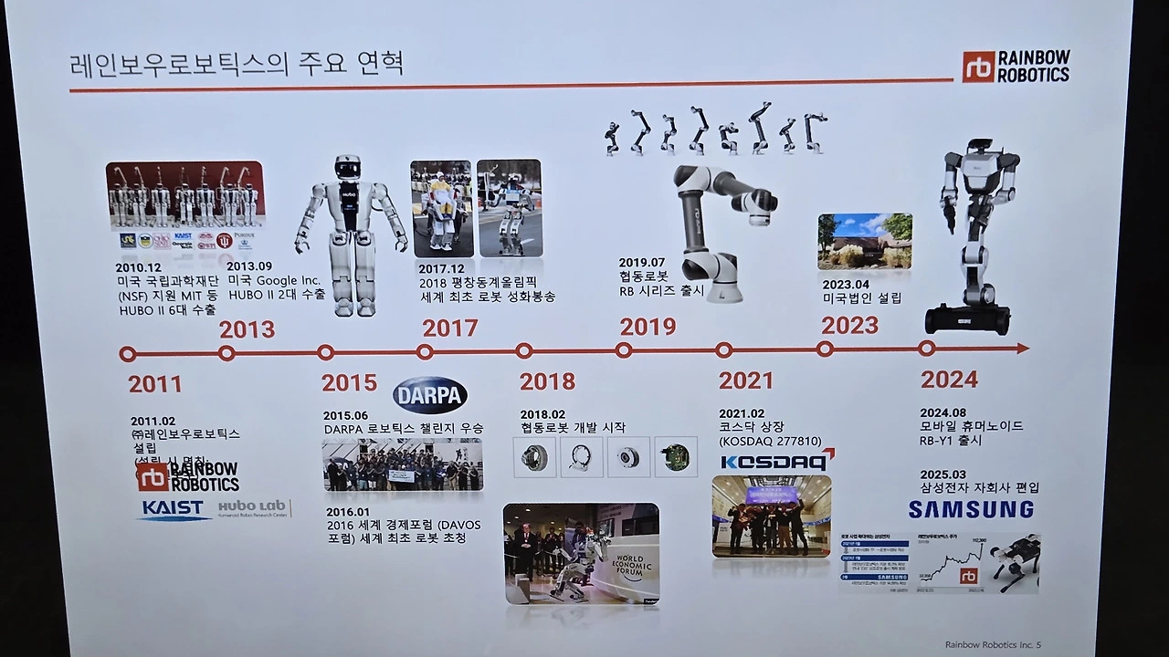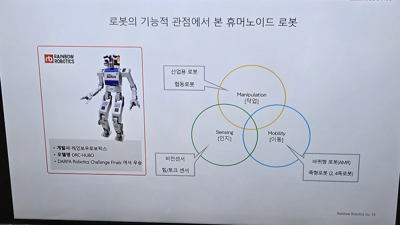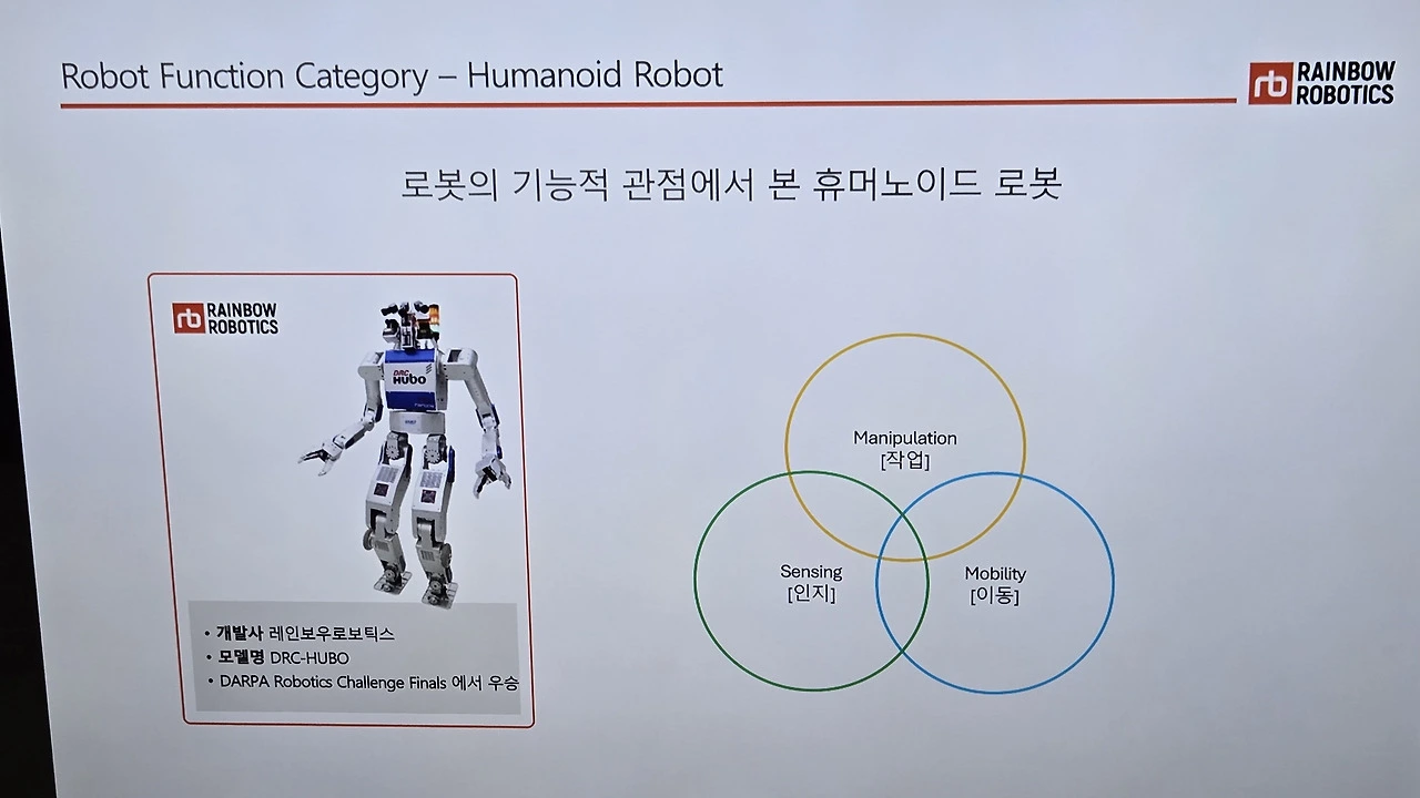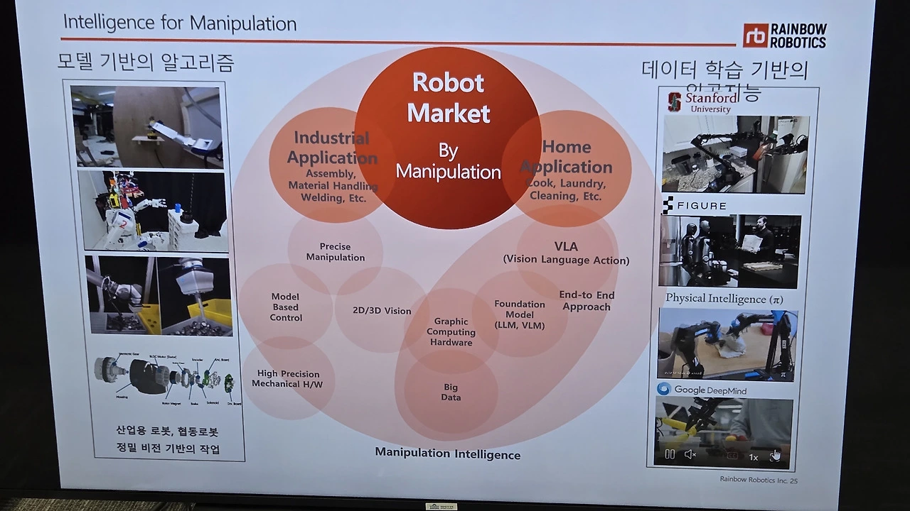 허정우 레인보우로보틱스 이사는 ‘레인보우로보틱스의 현재와 미래’를 주제로, AI와 센서, 제어기술 등 융합이 요구되는 휴머노이드 분야의 기술적 진입장벽을 ‘F1급 산업’에 비유했다. 그는 “최근 개발한 모바일 매니퓰레이터 ‘RBY1’이 전 세계 AI 연구자들의 주목을 받고 있으며, 상용화로 가는 중요한 전환점이 될 것”이라며, “삼성전자의 전략적 투자와 함께 기술 독립성과 정밀한 시스템 통합 역량을 바탕으로 글로벌 경쟁력을 확보하겠다”고 밝혔다.
