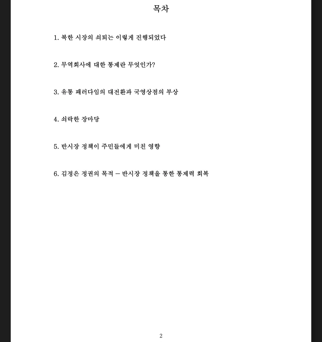 "쇠퇴하는 시장, 강화되는 국가 독점 - 급변하는 북한 경제와 회복되는 김정은의 통제력"