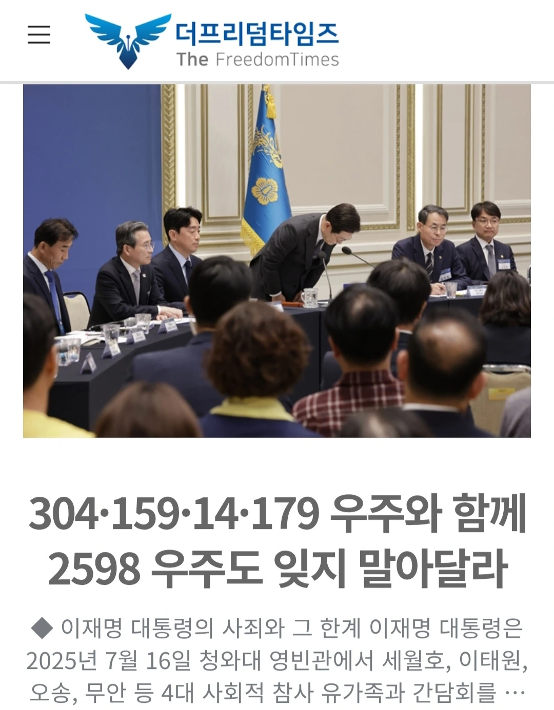 304·159·14·179 우주와 함께 2598 우주도 잊지 말아달라 | 더프리덤타임즈 주필 정중규
