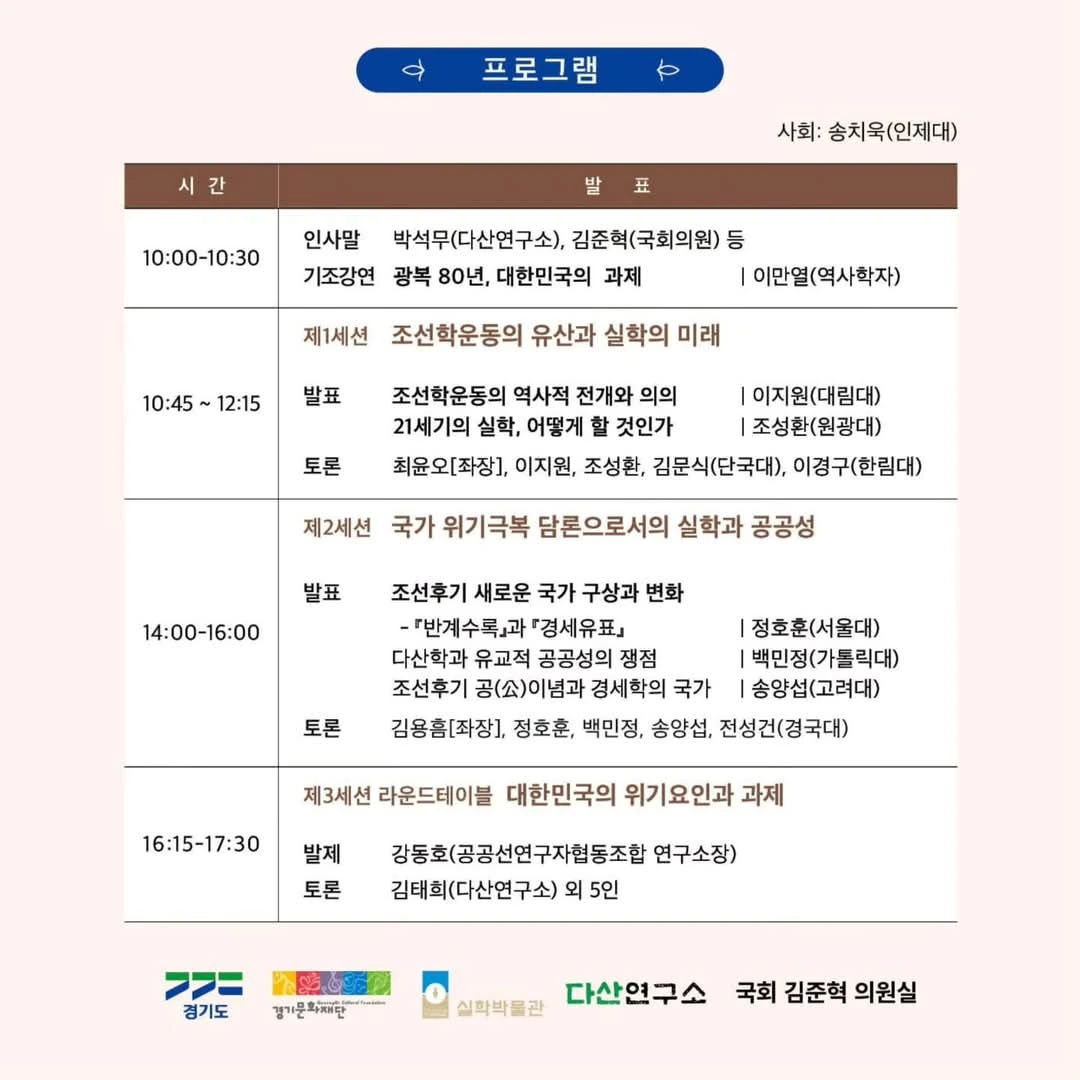 주최 : 다산연구소, 실학박물관, 민주당 김준혁 국회의원