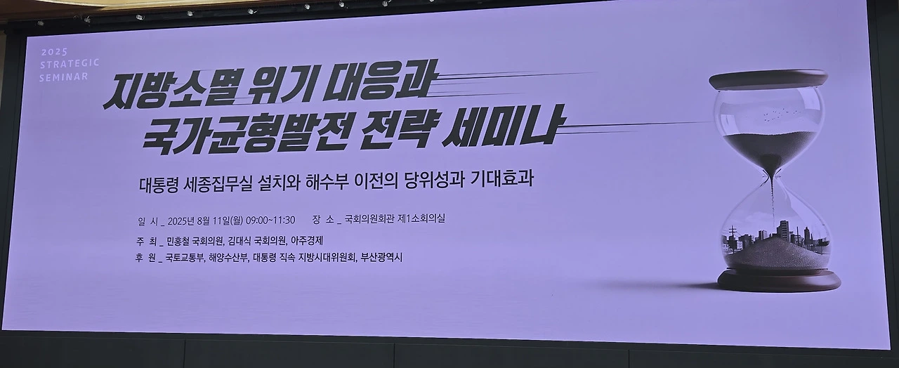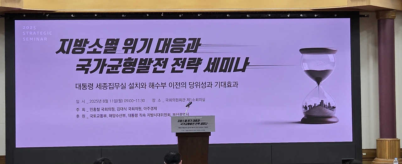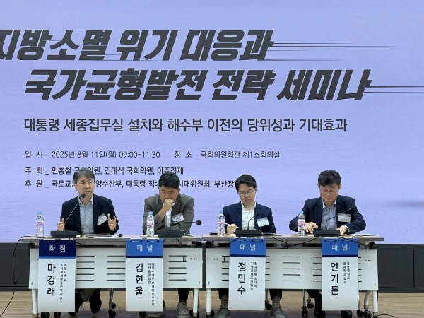 11일 서울 여의도 국회 의원회관에서는 민홍철 더불어민주당 의원과 김대식 국민의힘 의원 등이 주최하는 ‘지방소멸 위기 대응과 국가균형발전 전략’ 세미나가 개최됐다. 세미나에는 김순은 서울대 행정대학원 특임교수, 장하용 부산연구원 미래전략기획실장, 김한울 해양수산부 부산이전추진단 이전총괄팀장, 정중규 국민의힘 국책위원회 장애인위원장 등이 참석했다.