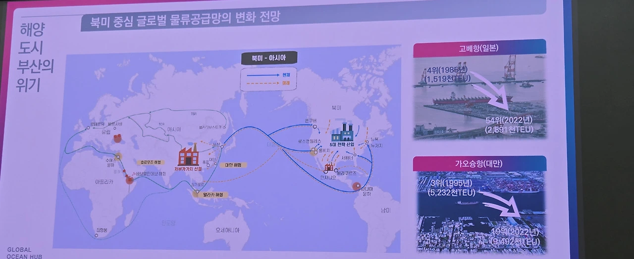 장하용 부산연구원 미래전략기획실장은 "비행기는 엔진 하나로 날 수 있지만 하나의 엔진으로는 문제가 생기면 위험하다"며 "같은 관점에서 해수부의 부산 이전을 통한 해양 수도 육성이라는 국가 경제 발전을 위한 새로운 엔진이 필요하다"고 말했다.