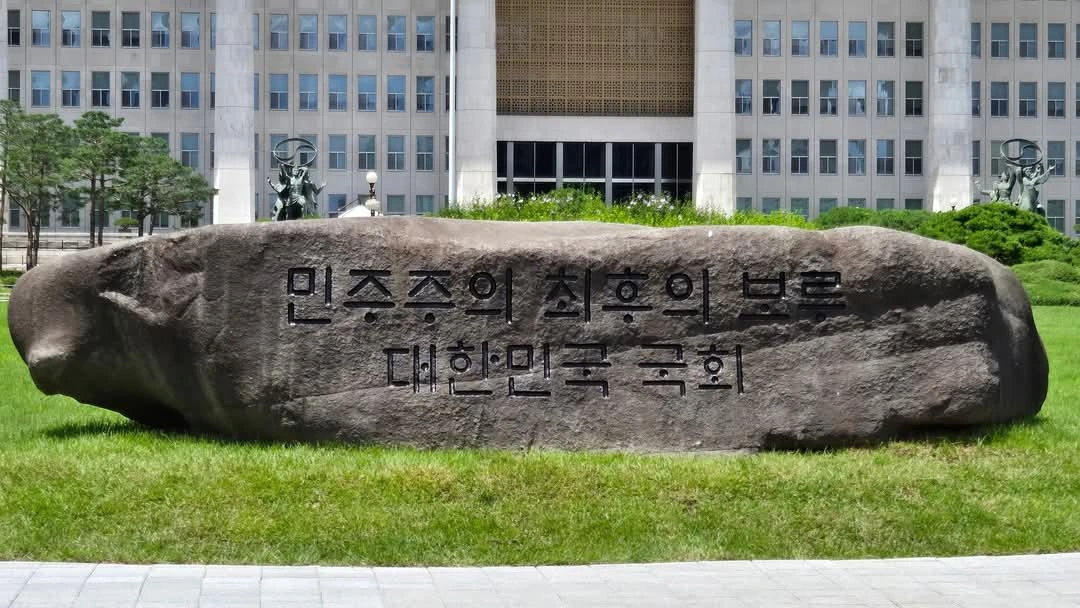 대한민국 국회를 들어서면 잔디광장 해태상 옆에 마치 고인돌을 연상시키는 큰 바윗돌이 가로 누워있다. 거기 “민주주의 최후의 보루 대한민국 국회”라는 글귀가 훈민정음 해례본체로 새겨져 있다. 지난 7월 17일 제77회 제헌절을 맞아 우원식 국회의장을 비롯 다수의 국회의원들이 모여 제막식을 가졌던 ‘국회 상징석’이다.