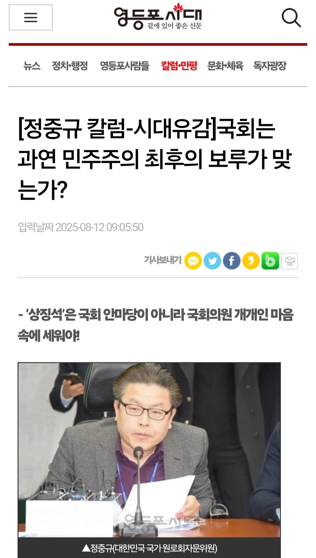 [정중규 칼럼 / 시대유감] 국회는 과연 민주주의 최후의 보루가 맞는가