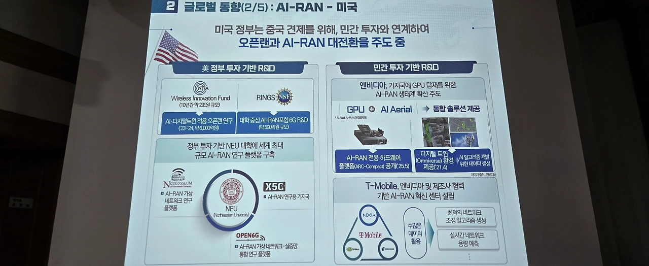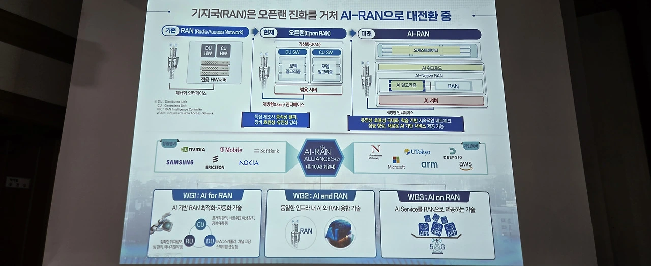 최성호 정보통신기획평가원 6G사업단장은 “무선접속망(RAN)이 오픈랜 진화를 거처 AI-RAN으로 대전환하는 흐름을 보이고 있다”라며 “미국 통신사인 티모바일(T-Mobile)은 최적의 네트워크 조정 알고리즘 생성을 위한 데이터를 확보하고자 엔비디아·에릭슨·노키아 등과 제휴해 AI RAN 혁신 센터를 설립한 한편, 엔비디아는 이미 AI-RAN 통합플랫폼인 ‘AI 에리얼(Aerial)’을 구축하고 AI 기반의 네트워크 최적화 기능 등을 제공하고 있다”고 설명했다.