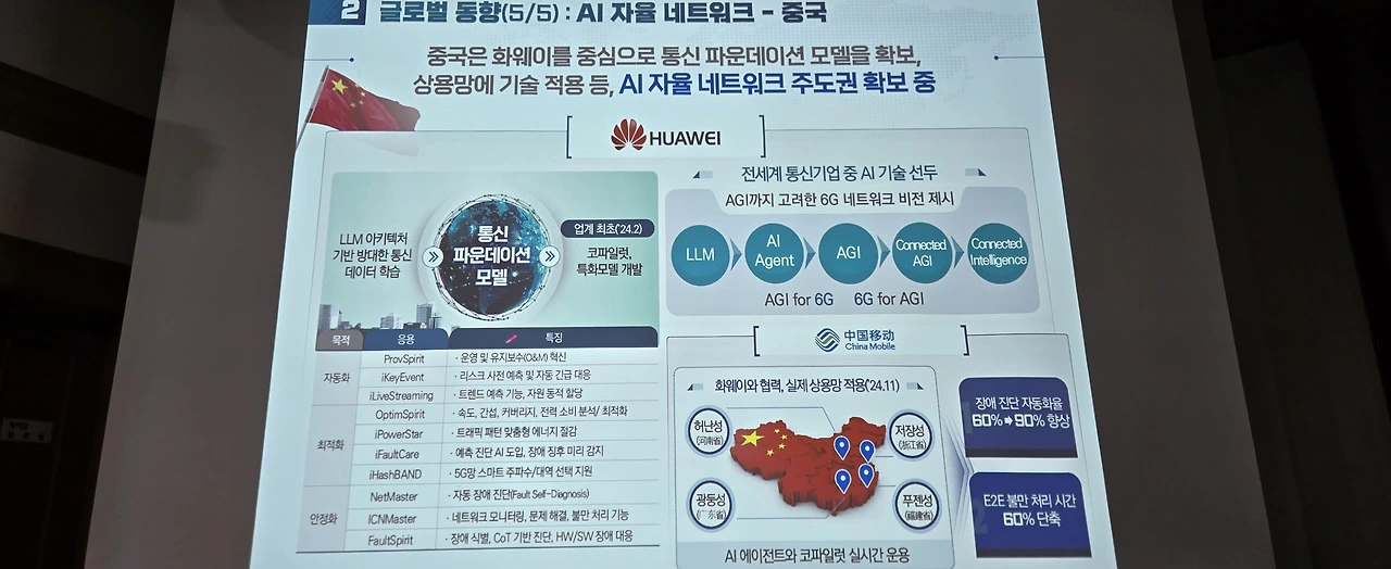 최성호 단장은 “네트워크를 자동화시킨다는 건 AI가 적용됐다는 거고, AI를 학습시키려면 망을 운용하면서 생성된 데이터가 필요하다”라며 “중국의 화웨이와 일본의 소프트뱅크는 어마어마한 정부 투자를 기반으로 이미 실증망 기반의 데이터 학습을 진행 중인데 이에 대적하려면 우리도 정부 차원의 속도감 있는 투자와 협력이 필요하다”고 강조했다.