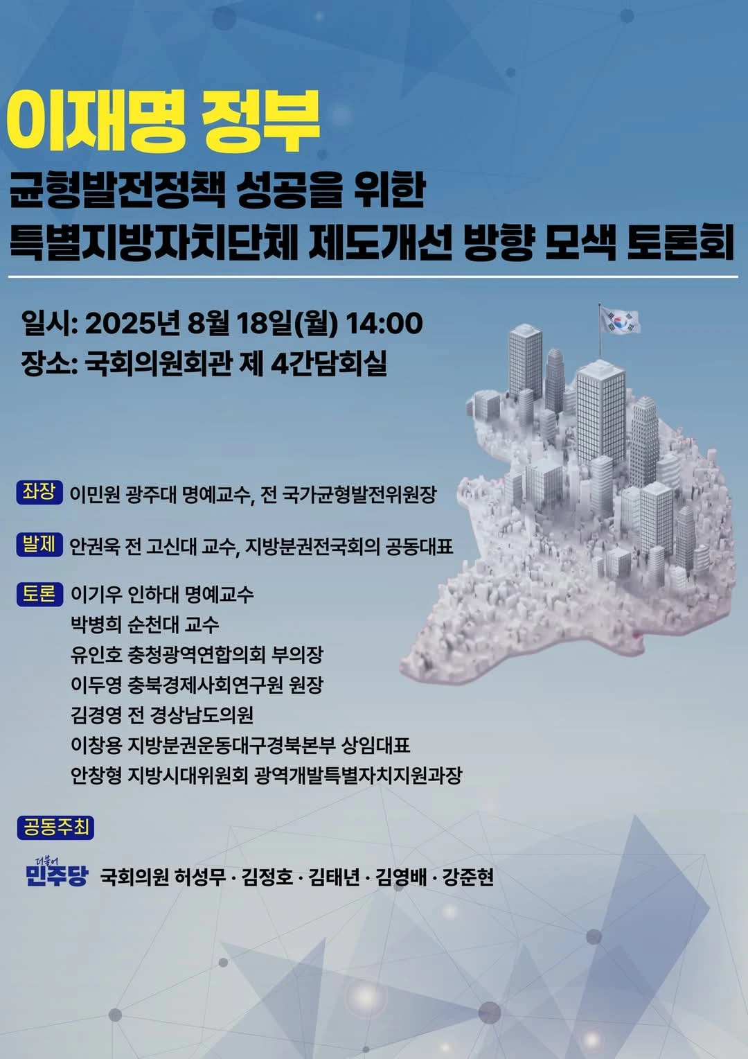 이재명 정부 균형발전정책 성공을 위한 특별지방자치단체 제도개선 방향 모색 토론회